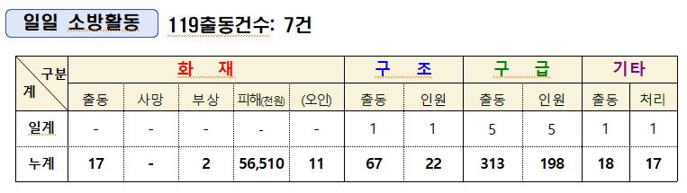 인제소방서 일일소방상황(3. 7.)