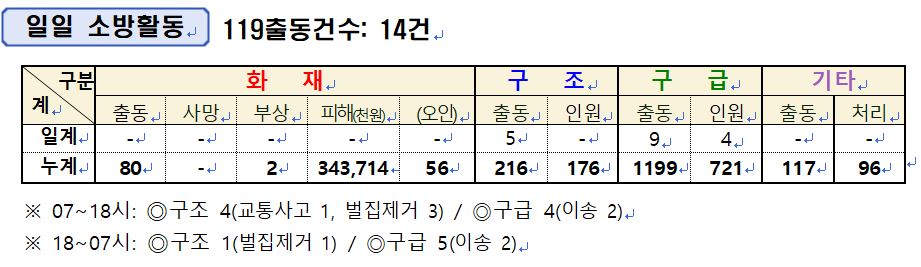 인제소방서 일일소방상황(8. 11.)