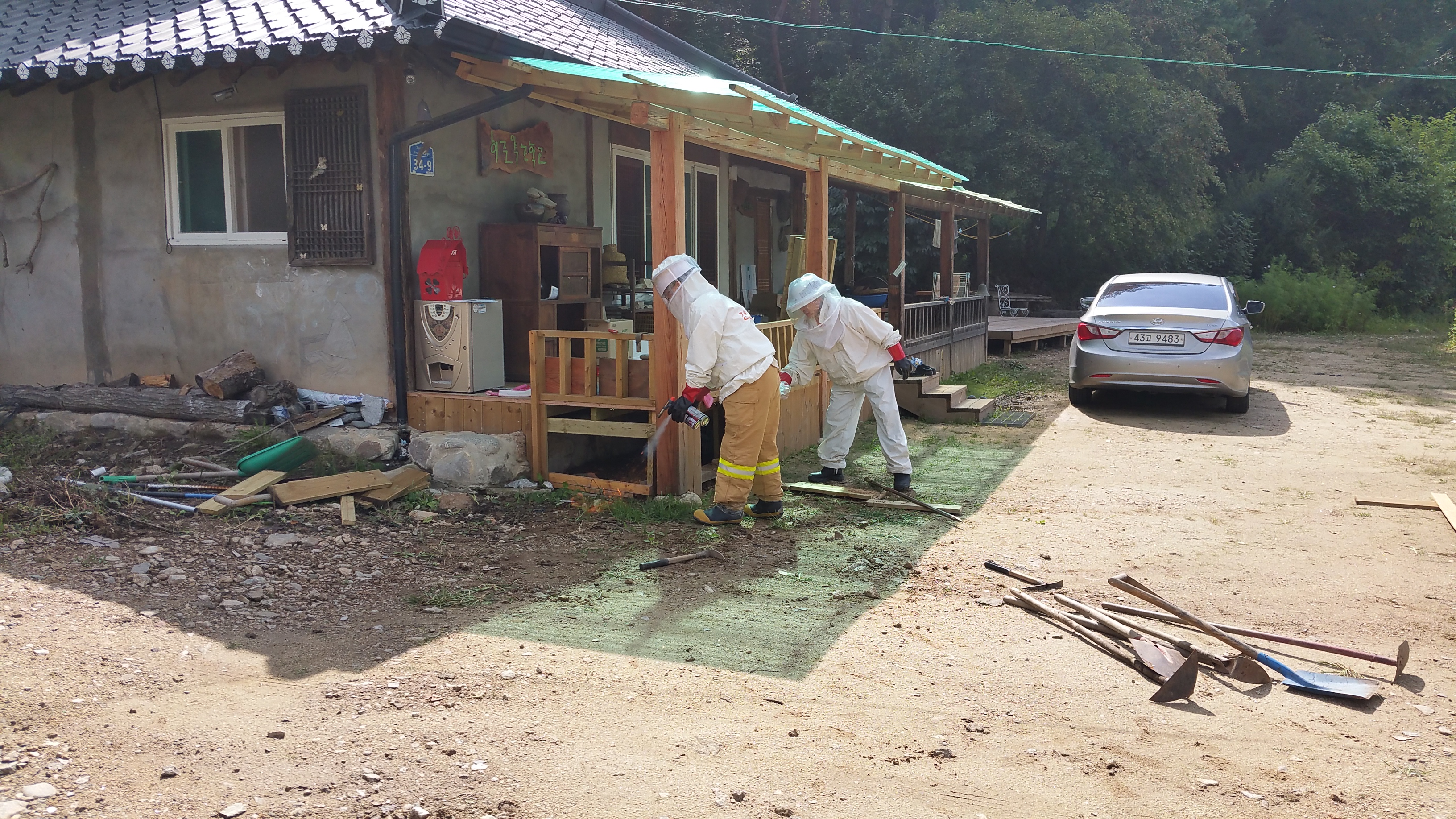 태풍이 지나고 나서인지 이젠 제법 날씨가 선선하여 해충보호복을 입어도 견딜만하다