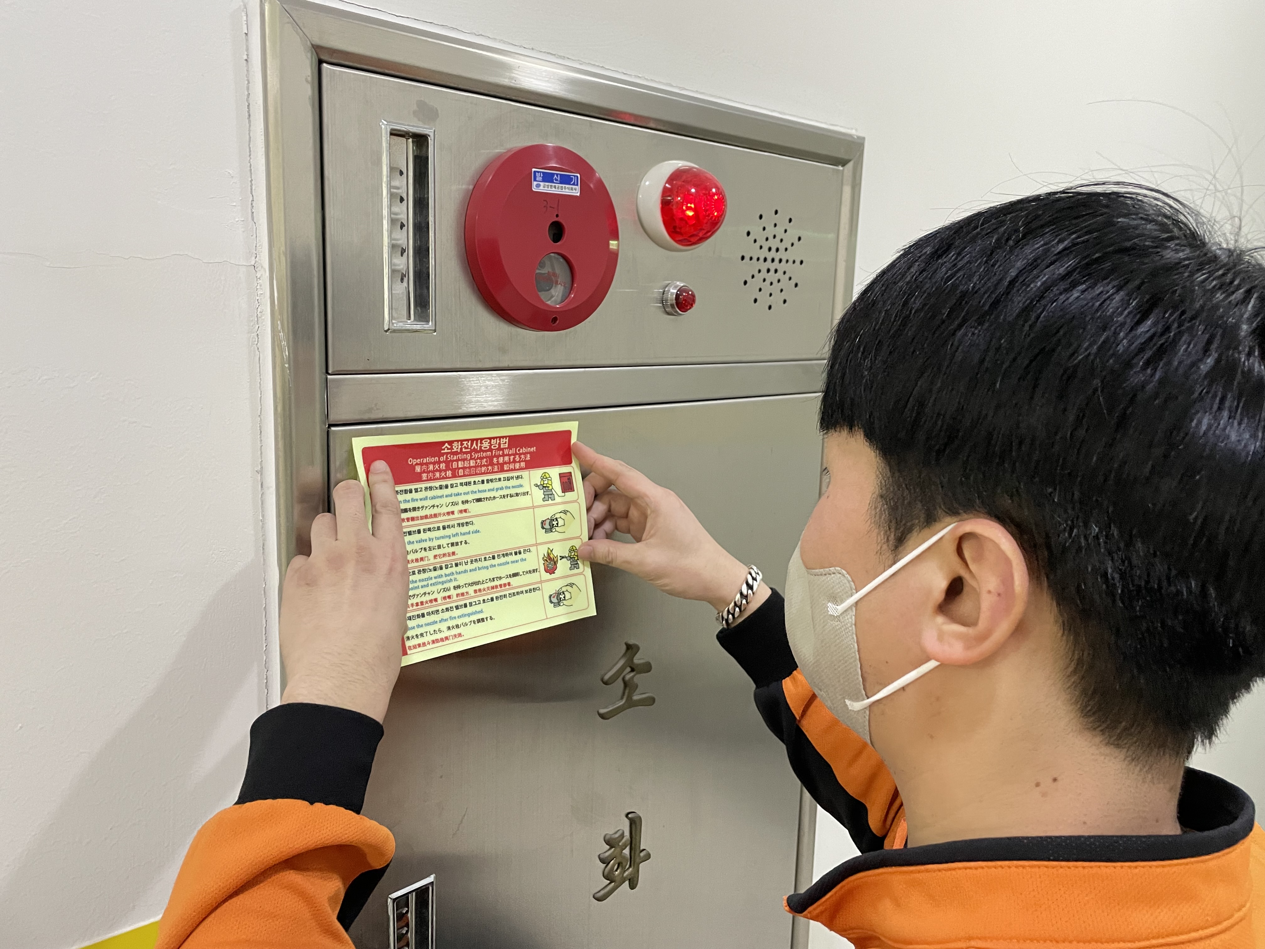 인제소방서, 옥내소화전 다국어 안내 스티커 부착