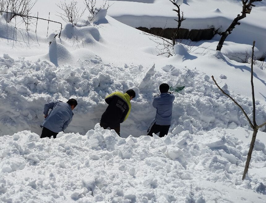 2014년 2월 15일 인제소방서(서장:김용락) 공무원과 의용소방대 60여명이 폭설로 뒤덮인 고성군 간성읍 탑동마을에서 제설․ 복구작업을 하고 있다.