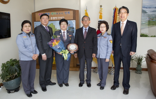 인제소방서(서장 김용락) 인제읍여성의용소방대(대장 표춘희)는 2월 으뜸봉사단체 선정되어 강원도 자원봉사센터 명의의 인증패를 이순선 군수로 부터 수상