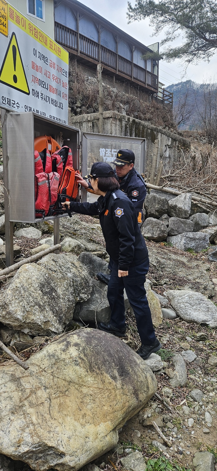 이번 해빙기 안전사고 대비 현지 확인은 인제군 덕산리 합강교 외 2개소를 대상으로 실시되었으며, 인명 구조함·표지판 등 수난사고 대비 시설점검을 중점으로 하였다.