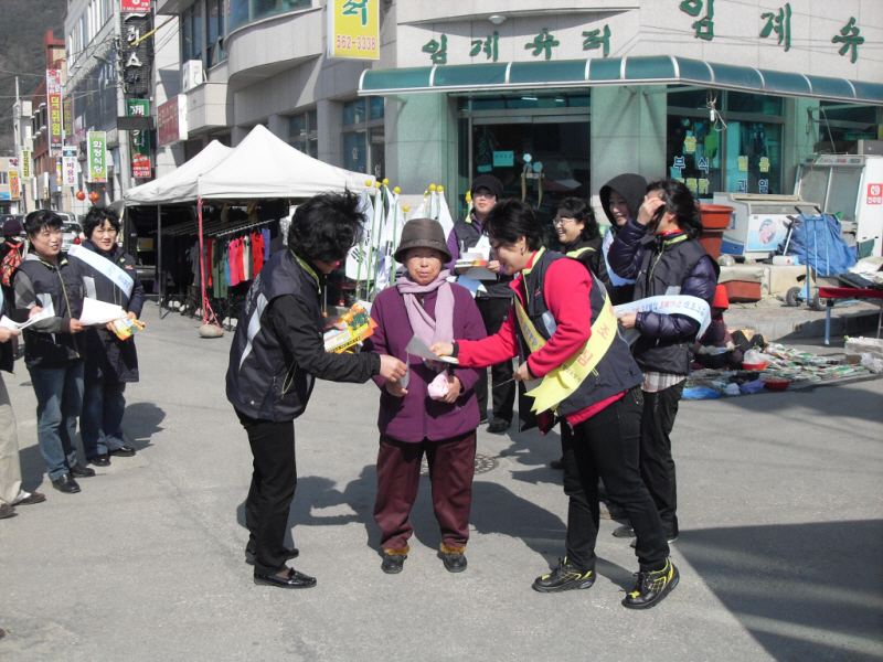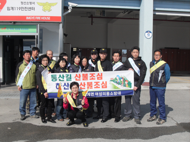 임계면 의용소방대원들과 임계119안전센터 직원들이 임계시장에서 산불예방 캠페인을 하였습니다.