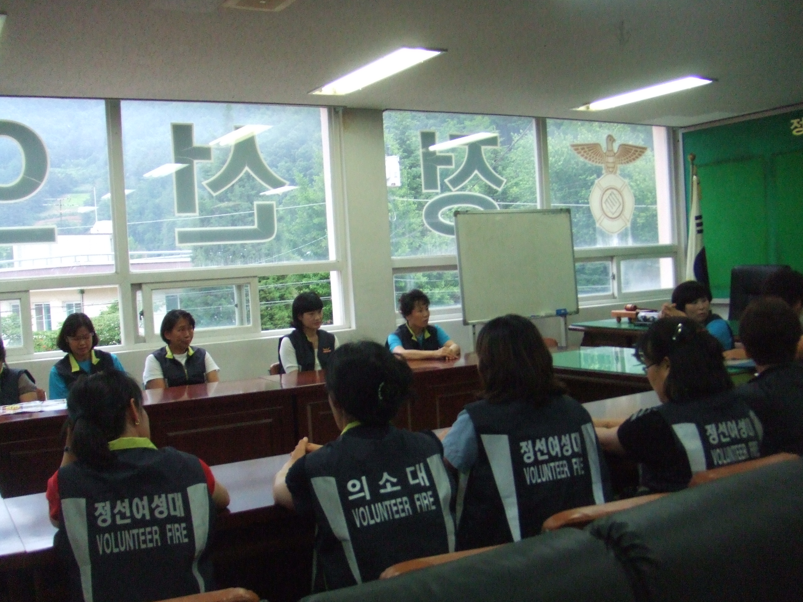 정선여성의용소방대(대장 장순자) 님과 대원들은 의용소방대 사무실에서