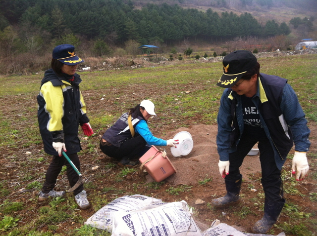 정선여성의용소방대(대장 윤춘희)에서는 4월 27일 자매마을(용탄2리)을 방문하여 마을에서 공동으로 운영하는 밭(6,000평)에 비료치는 작업을 하였다.