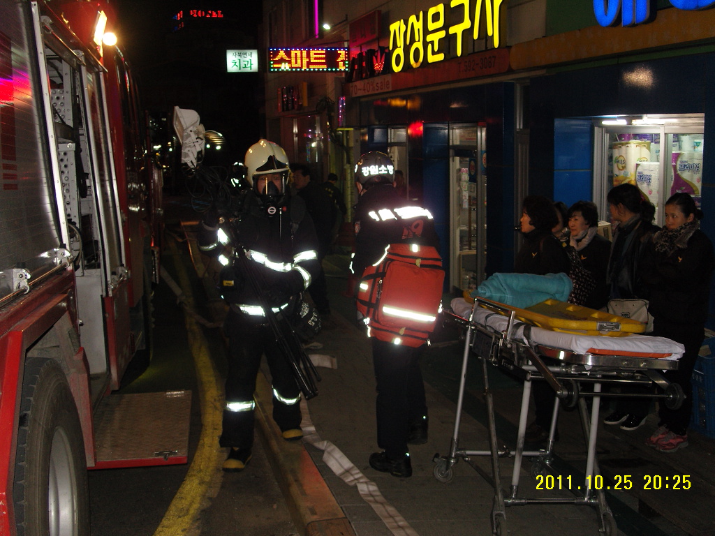 정선소방서(서장 박창진)는 2011년10월25일 19시 사북읍 사북시장에서 야간화재발생을 가상한 합동 소방훈련을 실시하였습니다. 펌프차량외 장비6대와 인원36명이 참가한 이번 훈련은 고한안전센터에서 도상훈련 후 사북시장에서 가상화점에 연기발생기를 동원 실제 연기를 피운상태에서 화재진압훈련이 진행되었습니다. 이번 훈련을 통하여 사북시장 화재발생 시 초기에 화재를 진압할 수 있다는 자신감을 갖는 계기가 되었습니다.