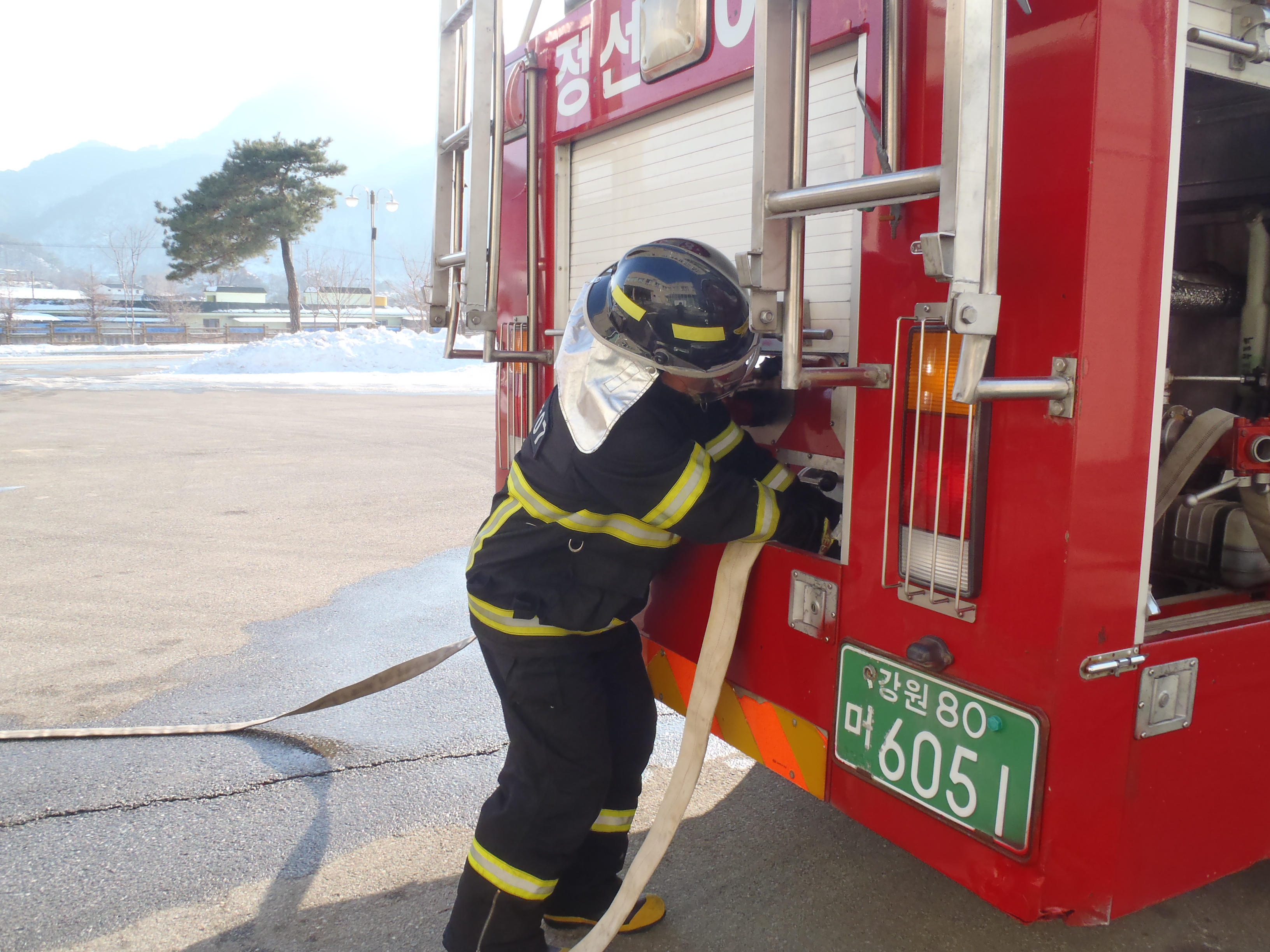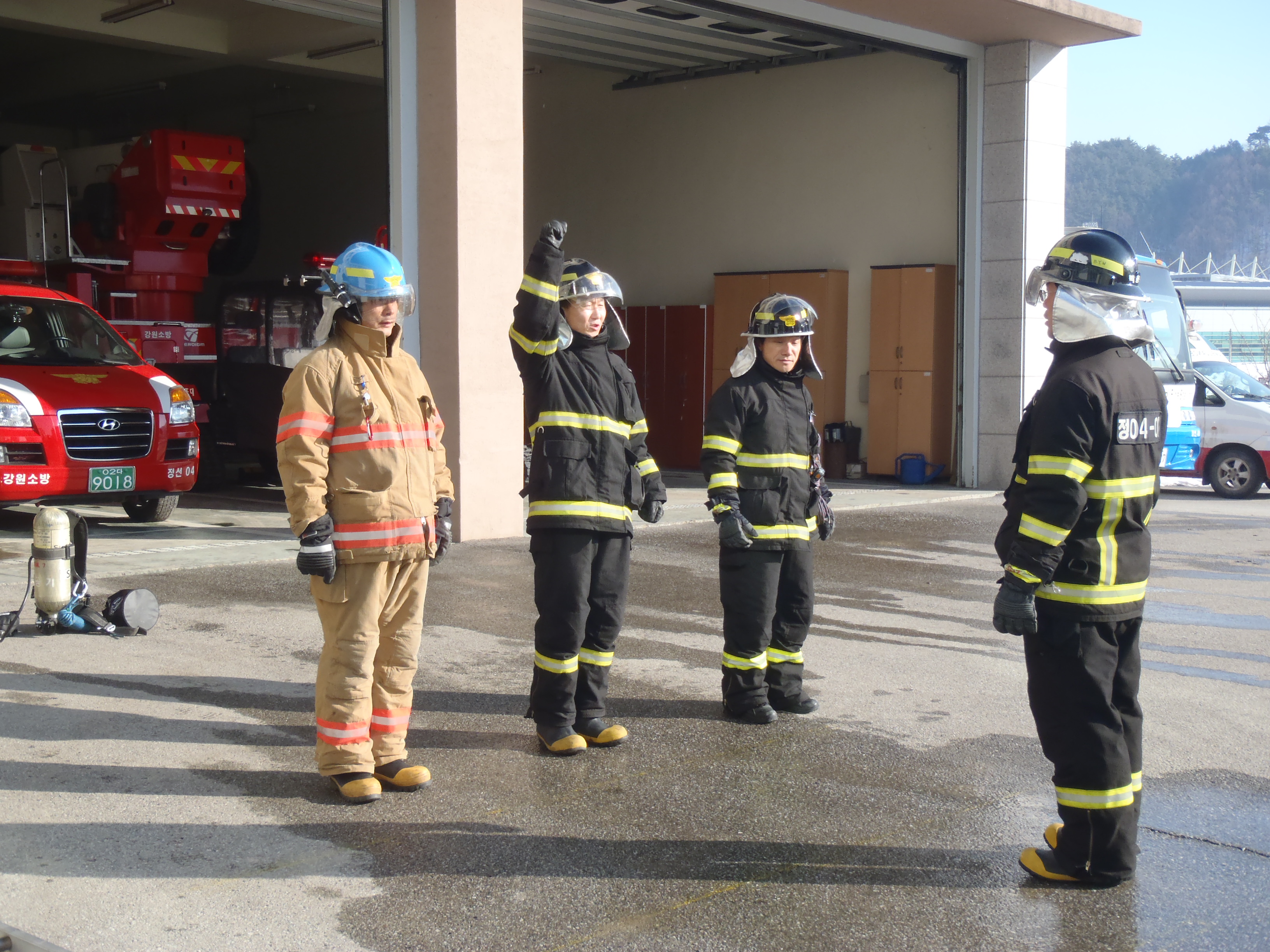 정선소방서(서장 주항중)에서는 화재발생시 신속한 대응활동을 하기위한 3인 전술훈련을 2013년 1월 7일 소방서 후정에서 실시하였다.