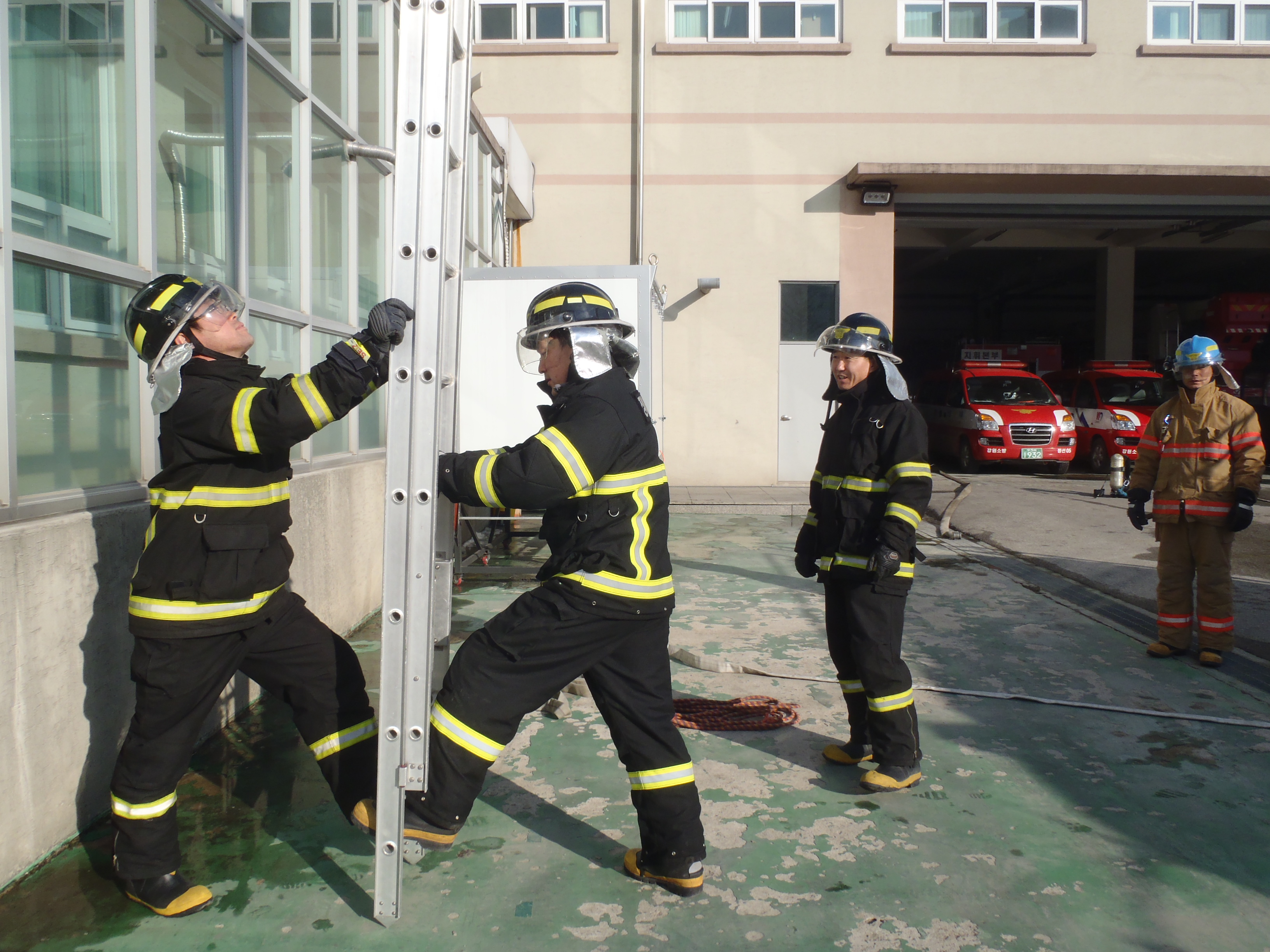 훈련내용으로는 1층 화재진압, 복식사다리를 전개하여 2층 화재를 진압하는 훈련이며, 개인장비를 완전히 장착하여 안전한 현장활동을 기하는 데 있다.