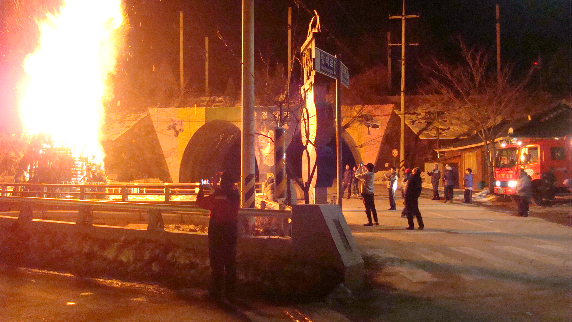 정선소방서(서장 주항중) 신동119안전센터장(센터장 전상봉)에서는02월 24일 19:00시 신동읍 조동리 안경다리에서 정월대보름을 맞이 달집태우기 행사를 하여 근접배치를 하였습니다.