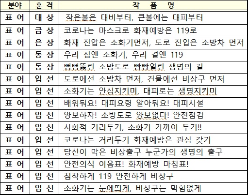 2020년 소방안전 표어 공모전 수상작
