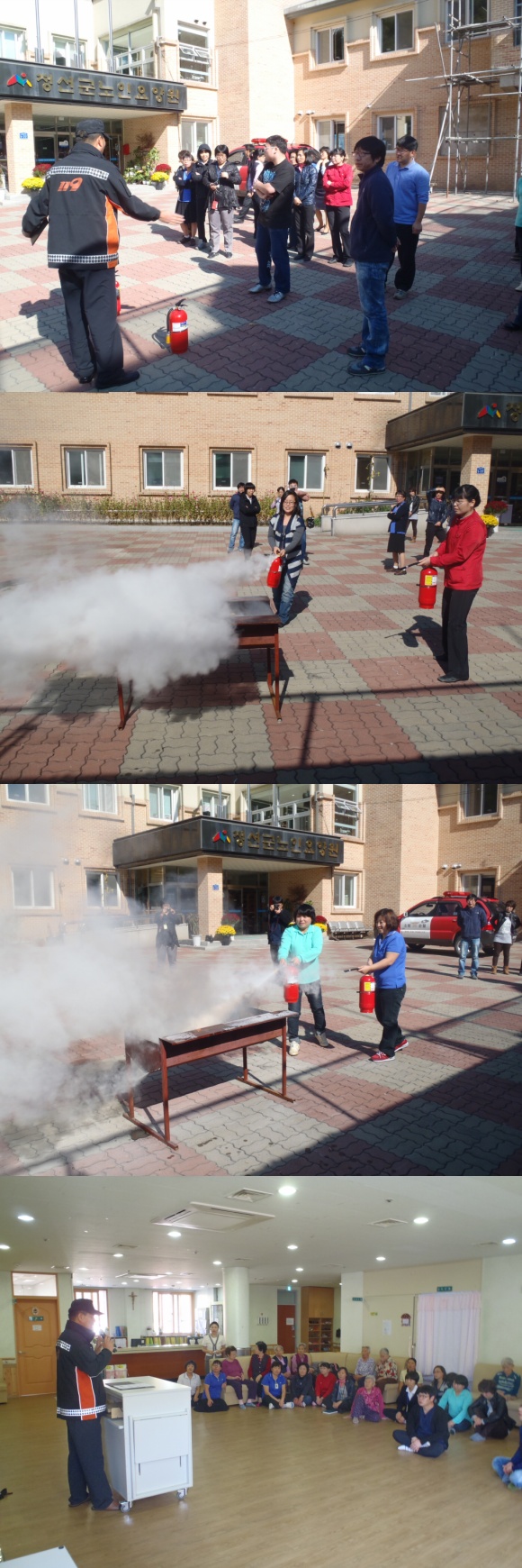 정선소방서(서장 박창진) 정선119안전센터는 2011년 10월 17일(월) 13:00 신월리 소재지 정선군 노인요양원에서 화재발생 대피훈련 및 소화기 사용법에 대하여 교육을 실시하였습니다.