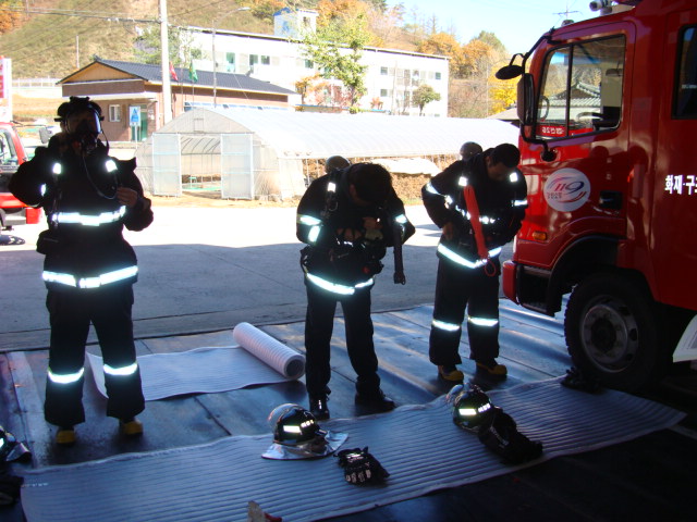 2011.10.26 신동센터 현장활동표준기법훈련 중 공기호흡기 착용훈련