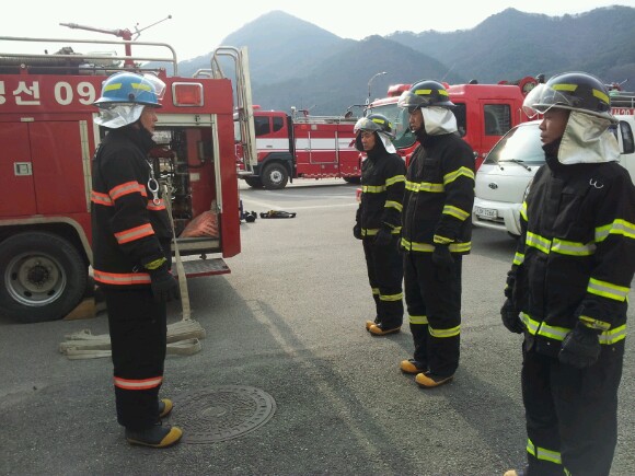 정선소방서(서장 박창진) 정선안전센터(2011.11.22)에서는 화재진압3, 4인조법을 실시하였습니다. 화재에 대비해 항상 실전과 같은 훈련에 임하겠습니다.