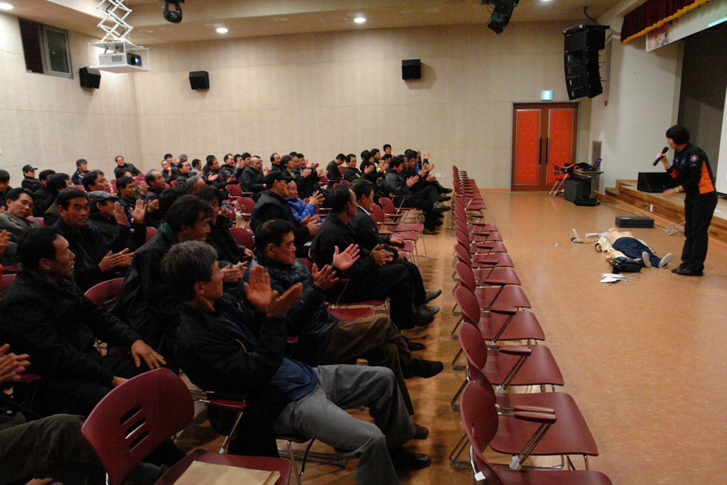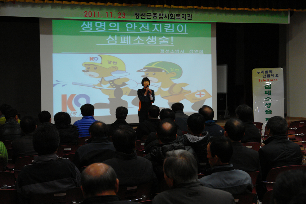 정선소방서(서장 박창진)는 2011. 11. 23. 정선종합사회복지관 3층 강당에서 민방위대원 170명을 대상으로 응급처치교육을 실시하였습니다. 심폐소생술의 중요성을 알게 된 민방위 대원분들의 교육에 대한 관심은 뜨거웠습니다.