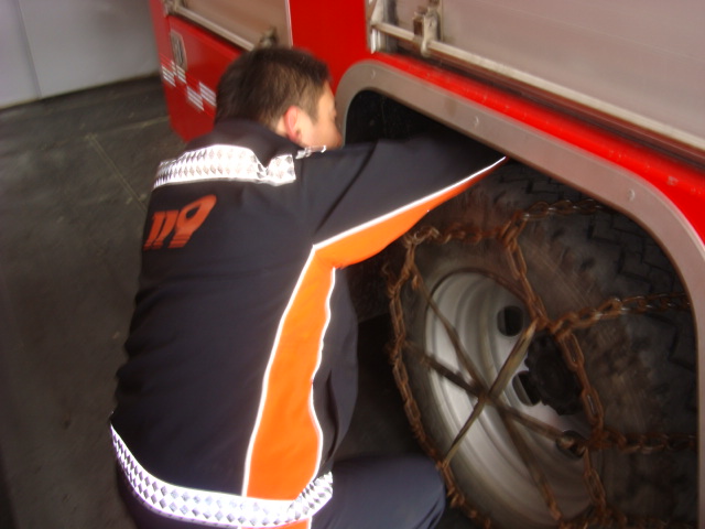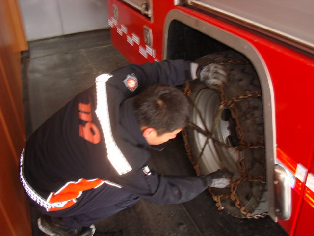 정선소방서(서장 박창진) 신동센터 주간근무자는 펌프차량에 대한 체인장착및 제설작업을 실시 언제나 화재나 구조,구급 시 신속한 출동을 할 수 있도록 출동근무태세 철저~~!!