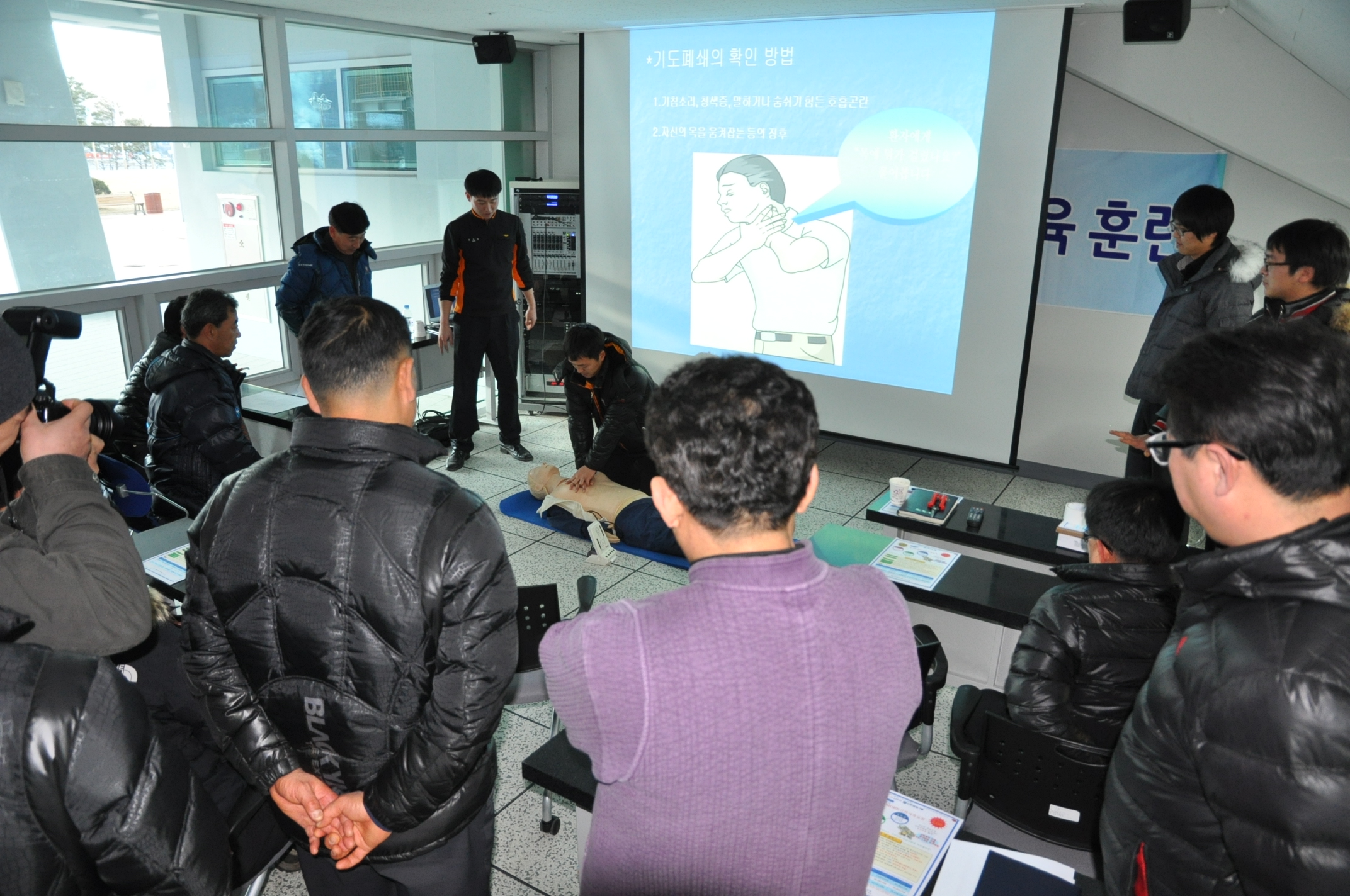 정선소방서(서장 박창진) 정선119안전센터에서는 119 심폐소생술 퍼레이드 관련 심폐소생술을 널리 홍보하기 위해 시설관리공단의 직원분들께 응급처치교육을 실시하였습니다.