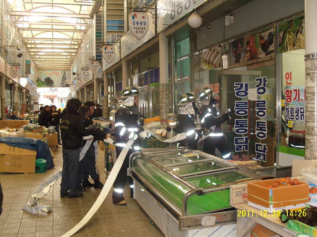 이번 훈련은 재래시장 화재대응 메뉴얼에 의거 부서별 임무숙지에 따른 신속한 대응능력을 배양하며, 함동 주정차 단속을 통한 소방통로 확보 및 시장 관계자와 이용객을 대상으로 소방홍보 및 안전교육을 실시하였습니다.
