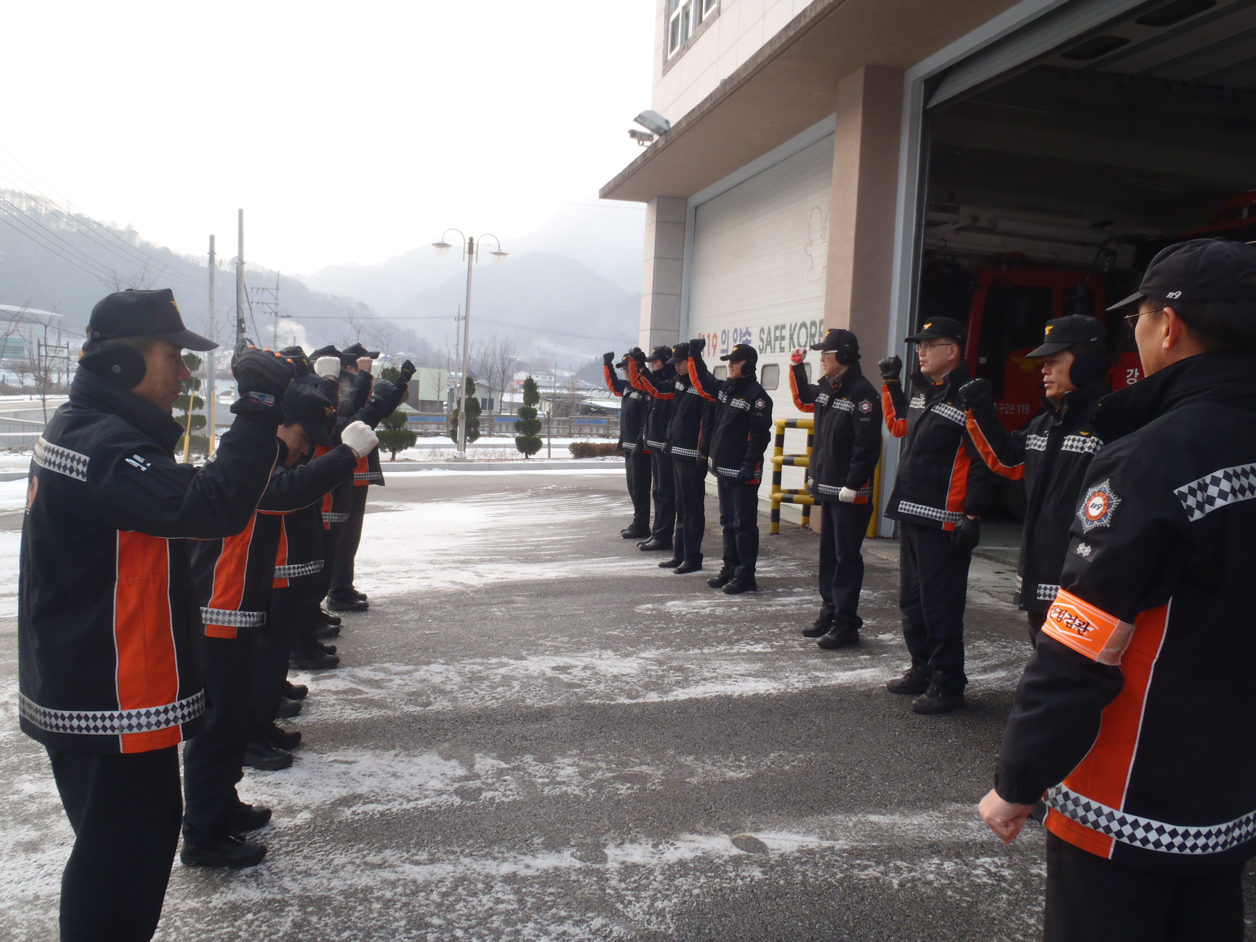 정선소방서(서장 박창진)정선119안전센터에서는 각 출통차량점검을 실시하고 야간근무자로 부터 제반업무를 인수인계 받은 후 안전구호와 함께 임무교대를 실시하였습니다.