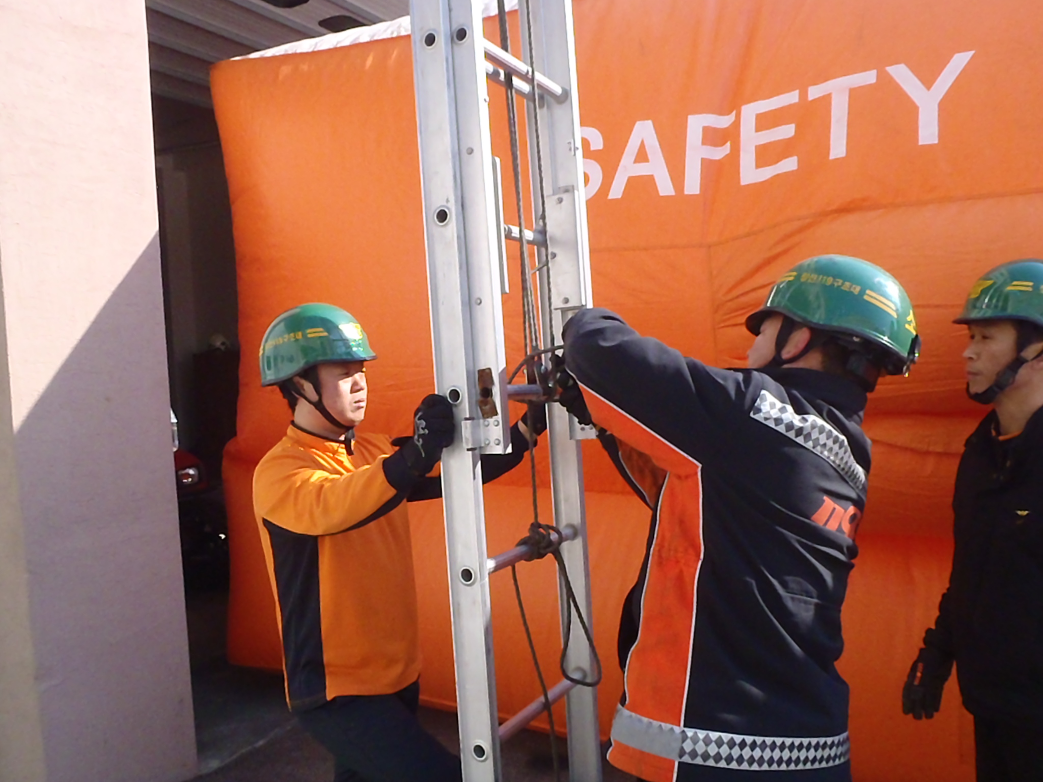 정선소방서(서장 박창진) 119구조대는 금일 어에매트 전개 및 착지 시범훈련을 실시했습니다. 금일훈련은 유사시 에어매트 전개가 필요할 때 신속 정확하게 활용하기 위해 공간확보 지점 과 에어매트 전개시간을 최대한 단축하기위해 여러 방법을 시도하고 수정하는 단계로 이루어졌습니다.