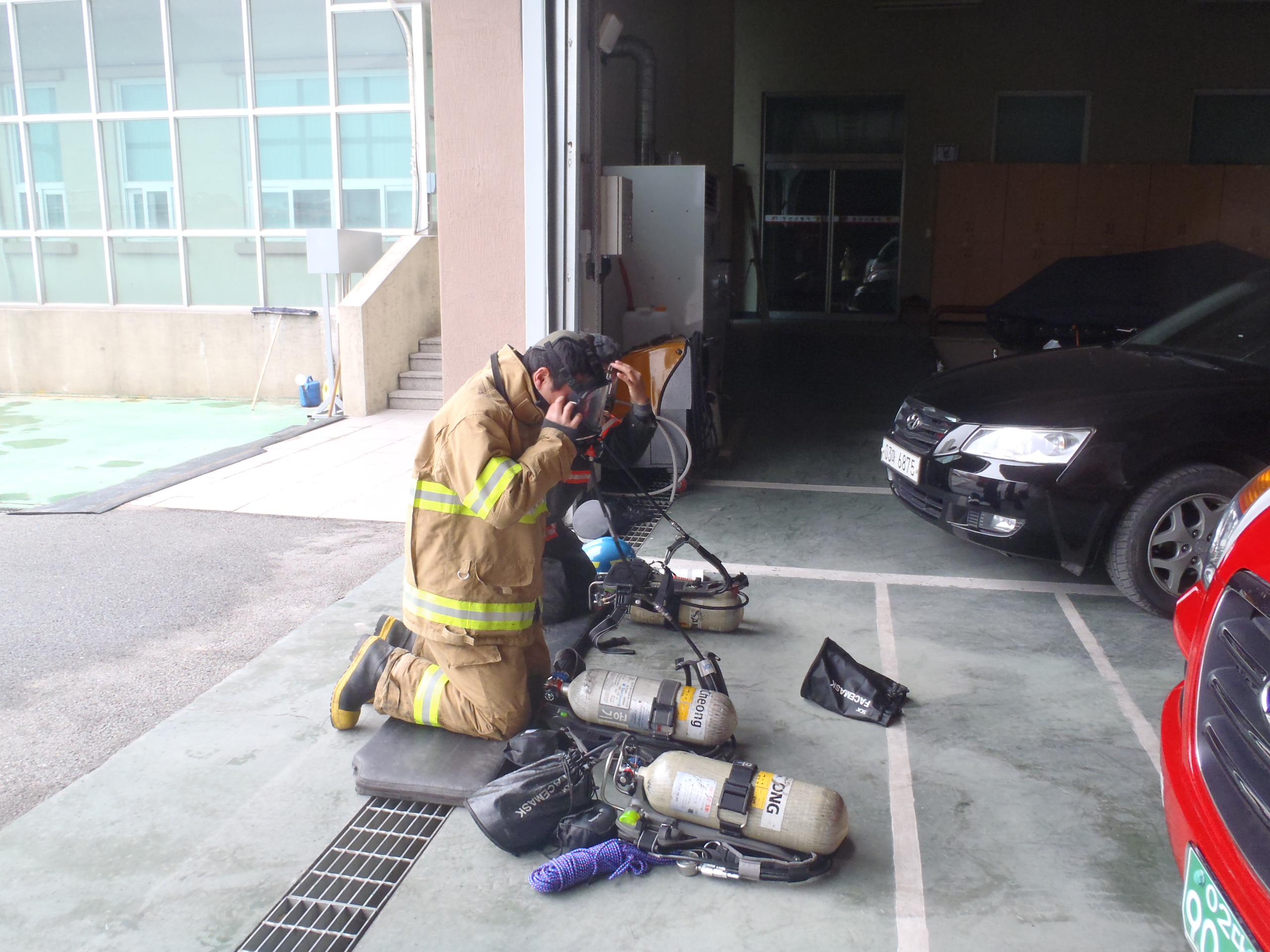 공기호흡기 조작훈련
