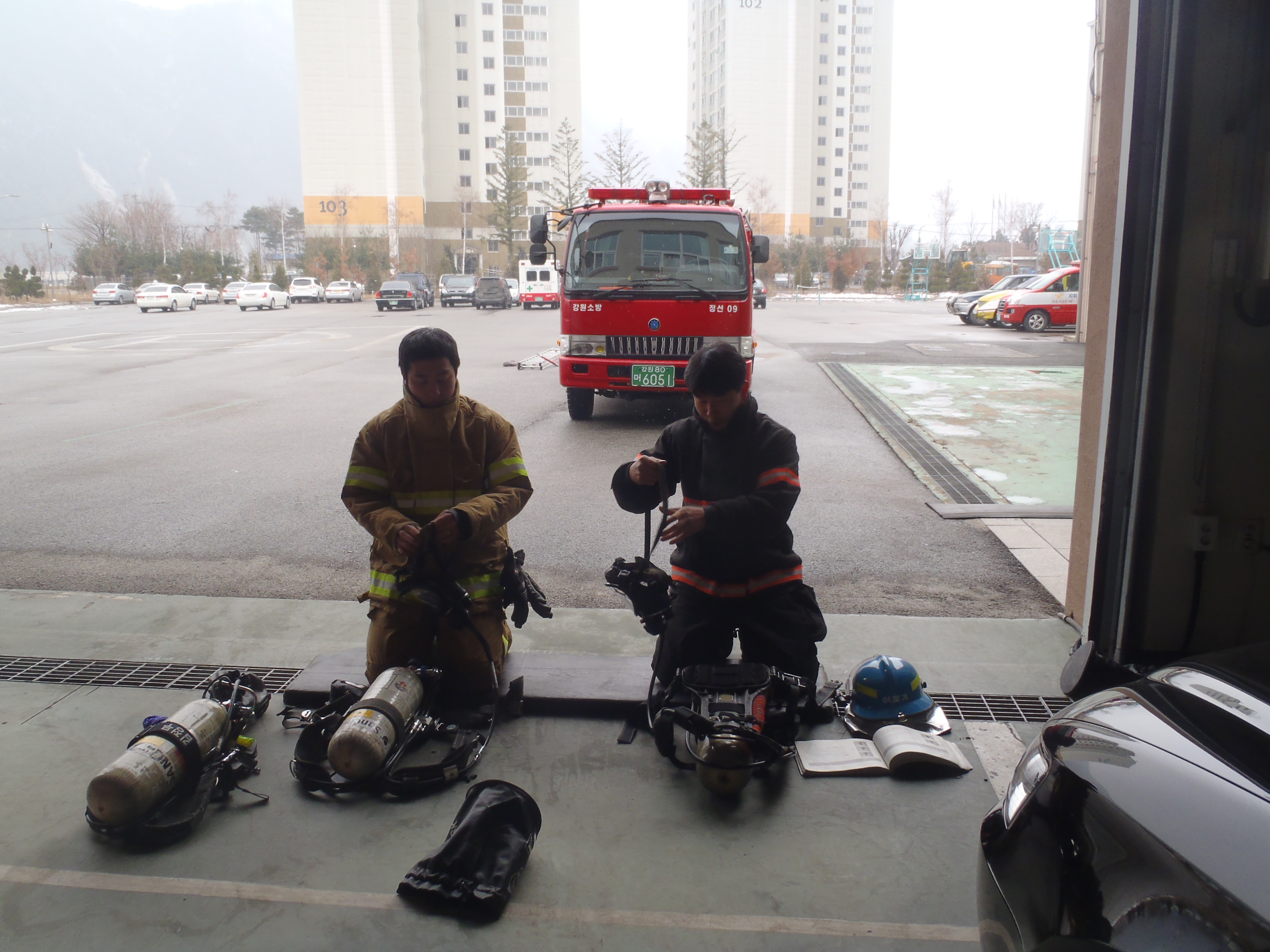 정선소방서(서장 박창진)정선119안전센터에서는 금일 신규직원을 대상으로 하는 공기호흡기 조작훈련을 실시하였습니다. 공기호흡기 기밀시험, 양압 및 대기호흡 숙달을 중점으로 훈련을 실시하였습니다.