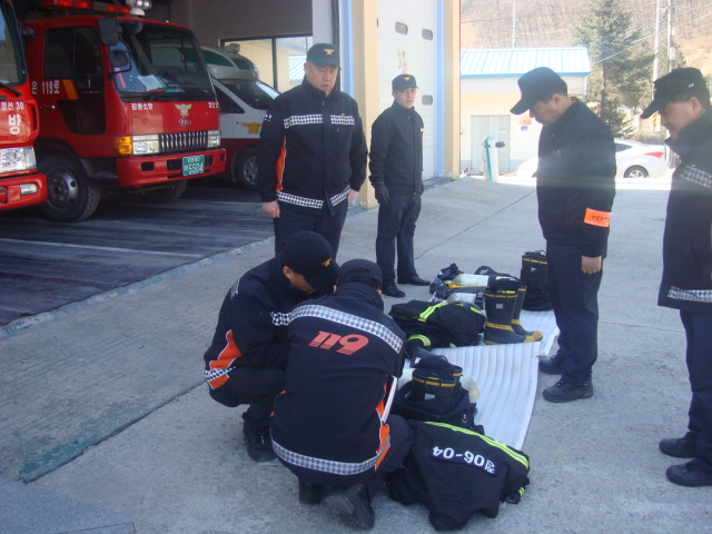 정선소방서(서장 박창진) 신동119안전센터에서 27일(월) 오전12시 현장지휘대장 입회하에 금일 근무자 전원에 대한 개인안전장구 및 현장안전사항(소방활동안전관리 메뉴얼) 숙지사항 점검을 실시하였다.