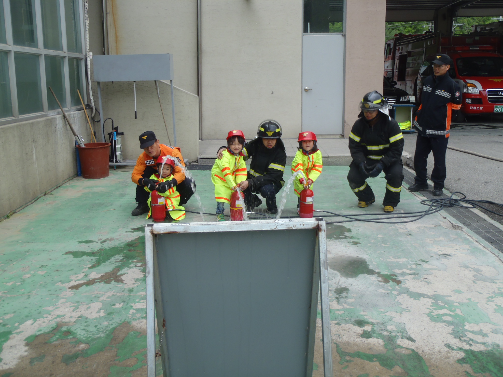 정선소방서(서장 박창진) 119구조대는 05.11. 14시부터 정선관내 고한 어린이집 어린이들을 맞아 소방교육을 실시 했습니다. 이번 교육은 기본적인 소화기 사용방법과 장난 전화 및 불장난 예방에 중점을 두었으며 어린이들에게 소방관 아저씨들이 어떤 일들을 하고 있는지에 대해 자세히 설명도 해주었답니다. 너무나도 이쁘고 깜찍한 새싹들과 보낸 즐거운 시간 이었습니다.~