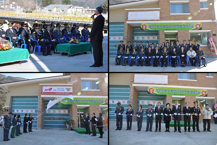정선소방서(서장 주항중)는 11. 22(금) 11시 화암 119 지역대 신축 청사에서 정선군수, 군의회의장, 도의원등 100여명이 참석한 가운데 준공식을 실시하였습니다.