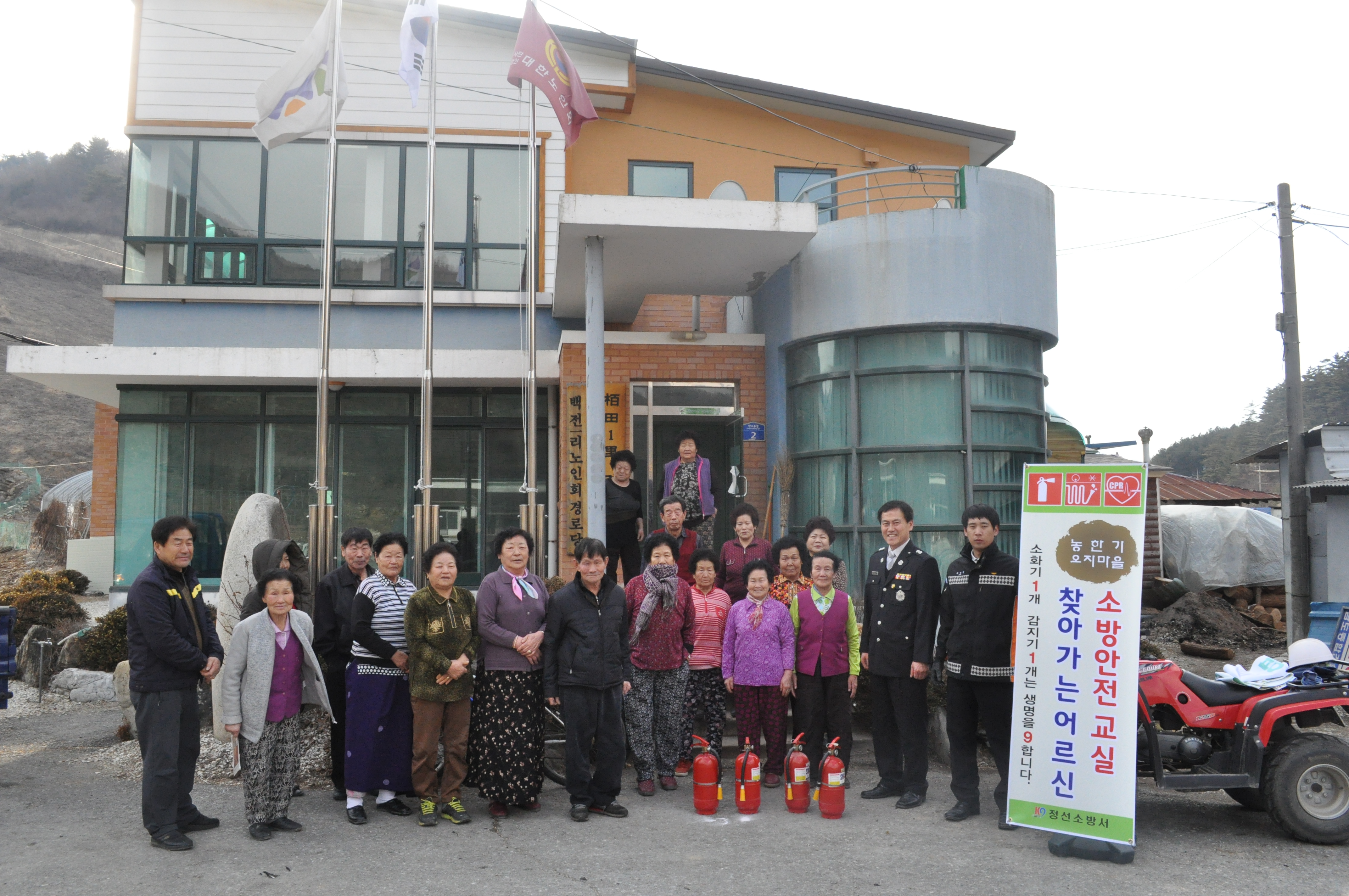 정선소방서(서장 이기중)는 2016. 02. 24 백전리노인정에서 '농한기 오지마을, 찾아가는 소방안전교실' 캠페인을 실시하였습니다.