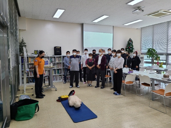 이번 교육은 ▲코로나19 생활방역지침에 따른 예방수칙 ▲ 119신고앱 및 다매체 신고방법 ▲화재 시 대피 요령 ▲소화기ㆍ소화전ㆍ완강기 사용법 ▲심폐소생술 이론 및 실습 등으로 진행됐다.