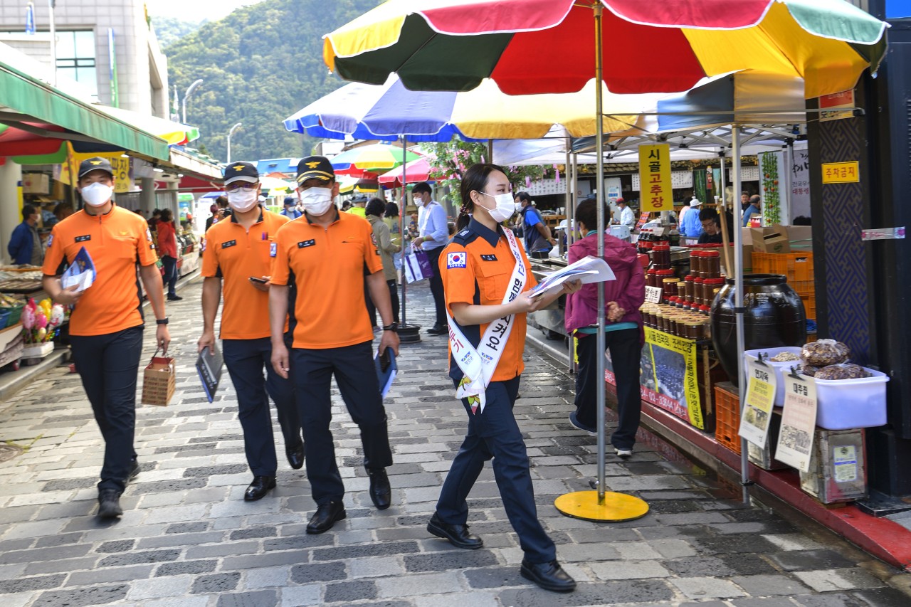 정선소방서(서장 이동학)는 22일 ‘9월 도민안전의 날’을 맞아 관내 전통시장 일원에서 ‘추석 고향집 주택용 소방시설 선물하기’ 캠페인을 진행했다고 밝혔다.