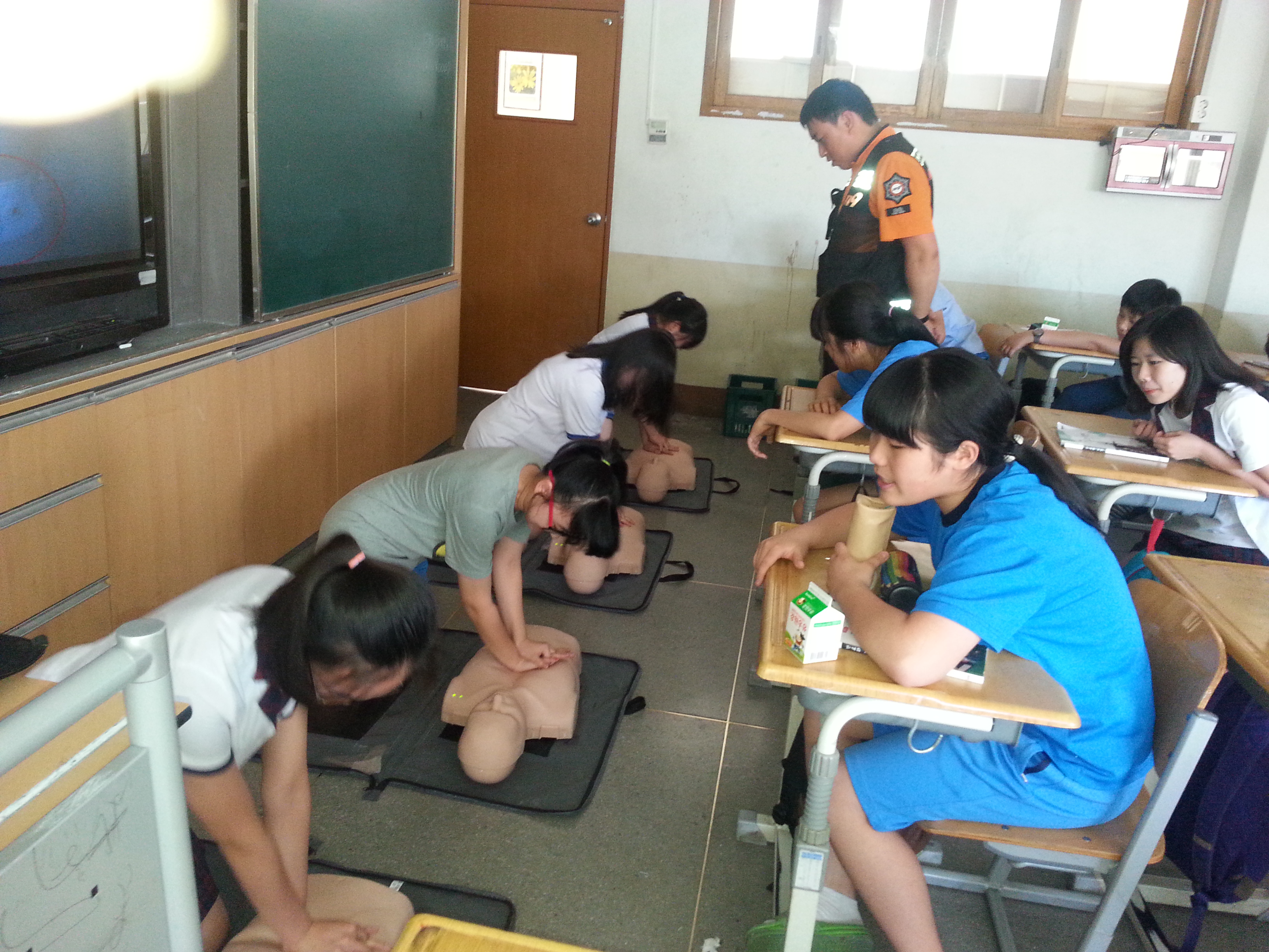 학생들이 심폐소생술 교육을 받고 많은 것을 배우고 체험하게 되어 너무도 유익한 시간이었습니다.