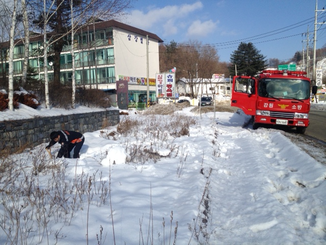 며칠동안 내린 눈에 소화전 위치 파악에 애로사항이 있어,
