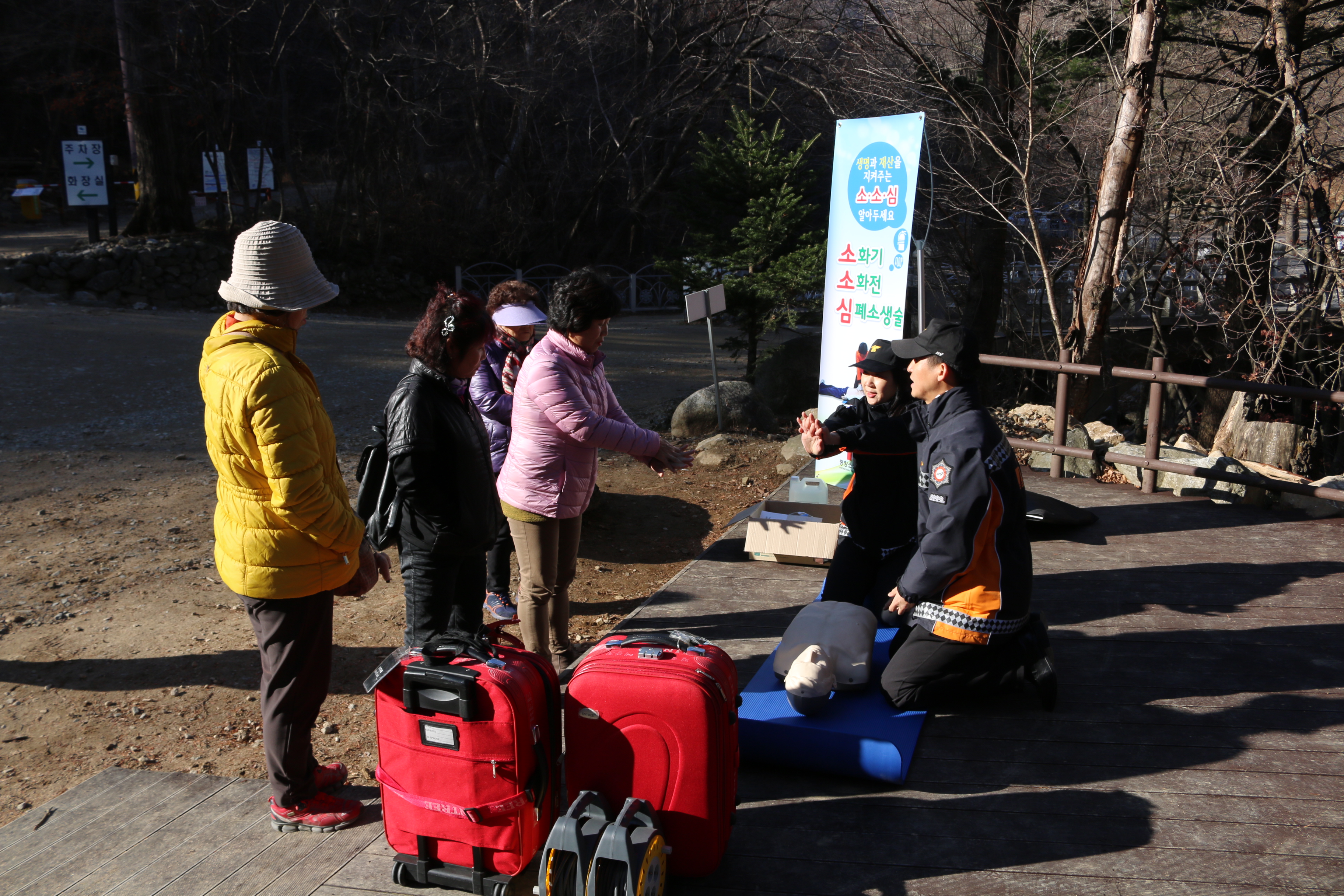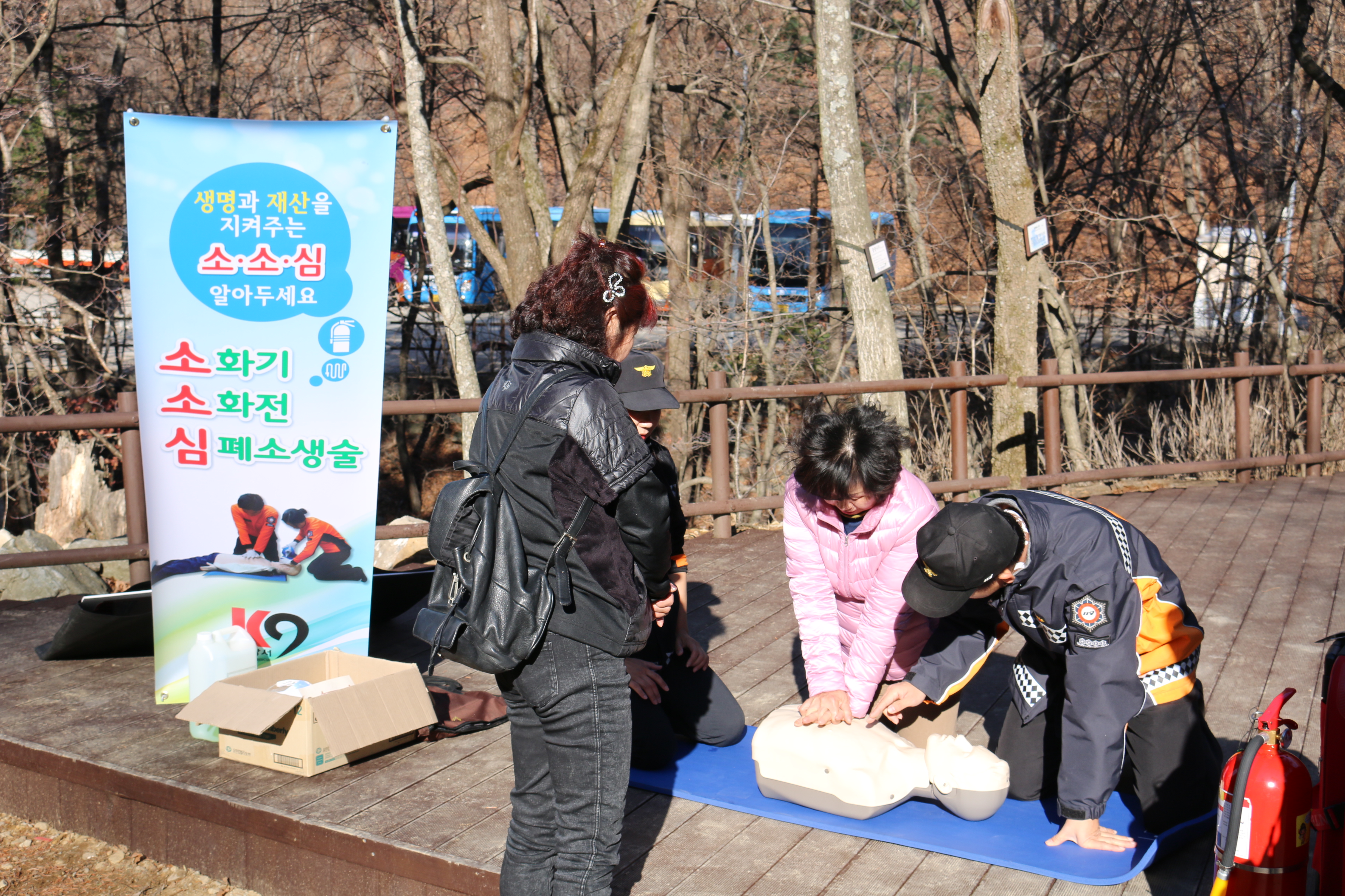 14일 오후 2시 오대산국립공원 상원사 앞 공터에서 119안전체험장을 운영했습니다.