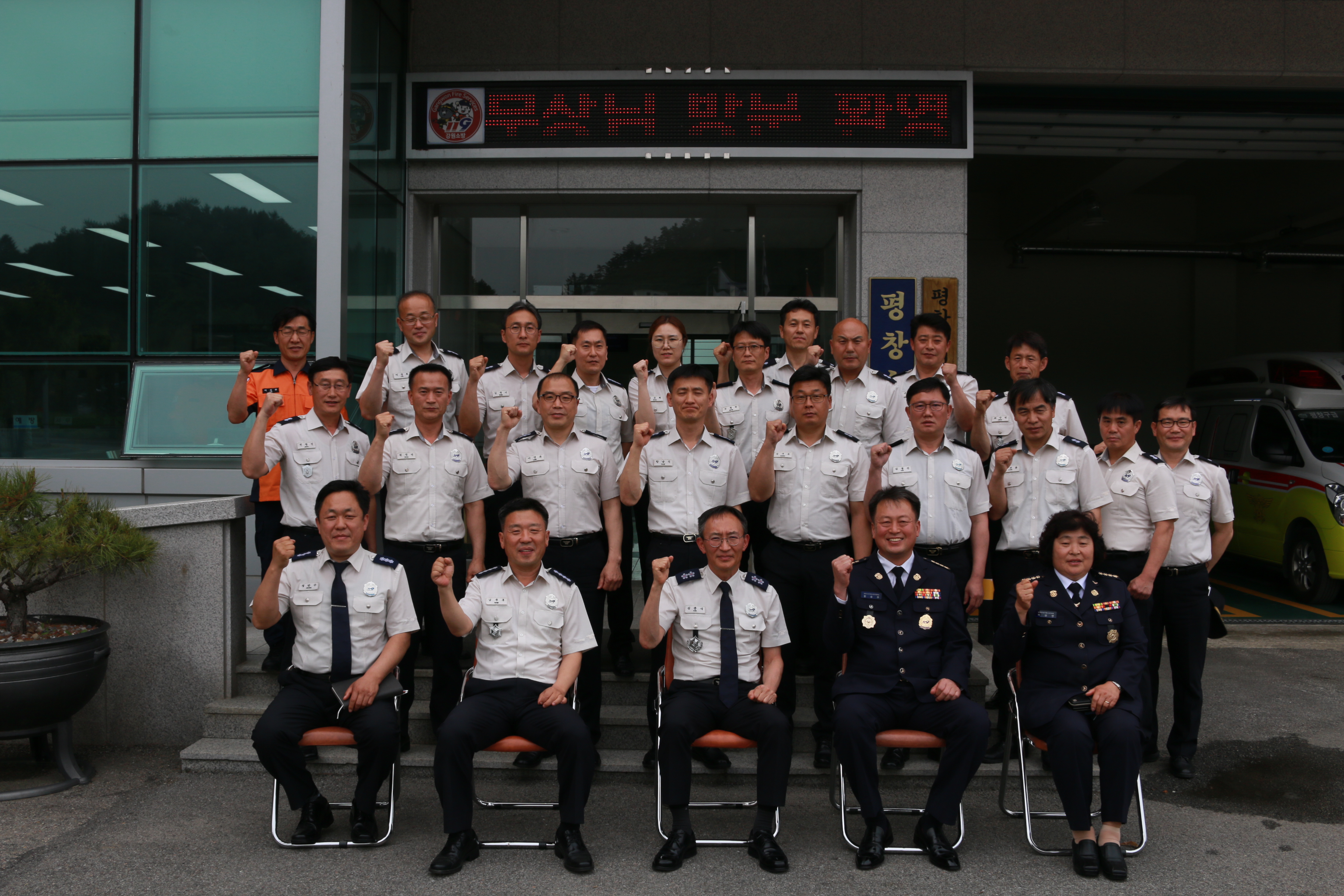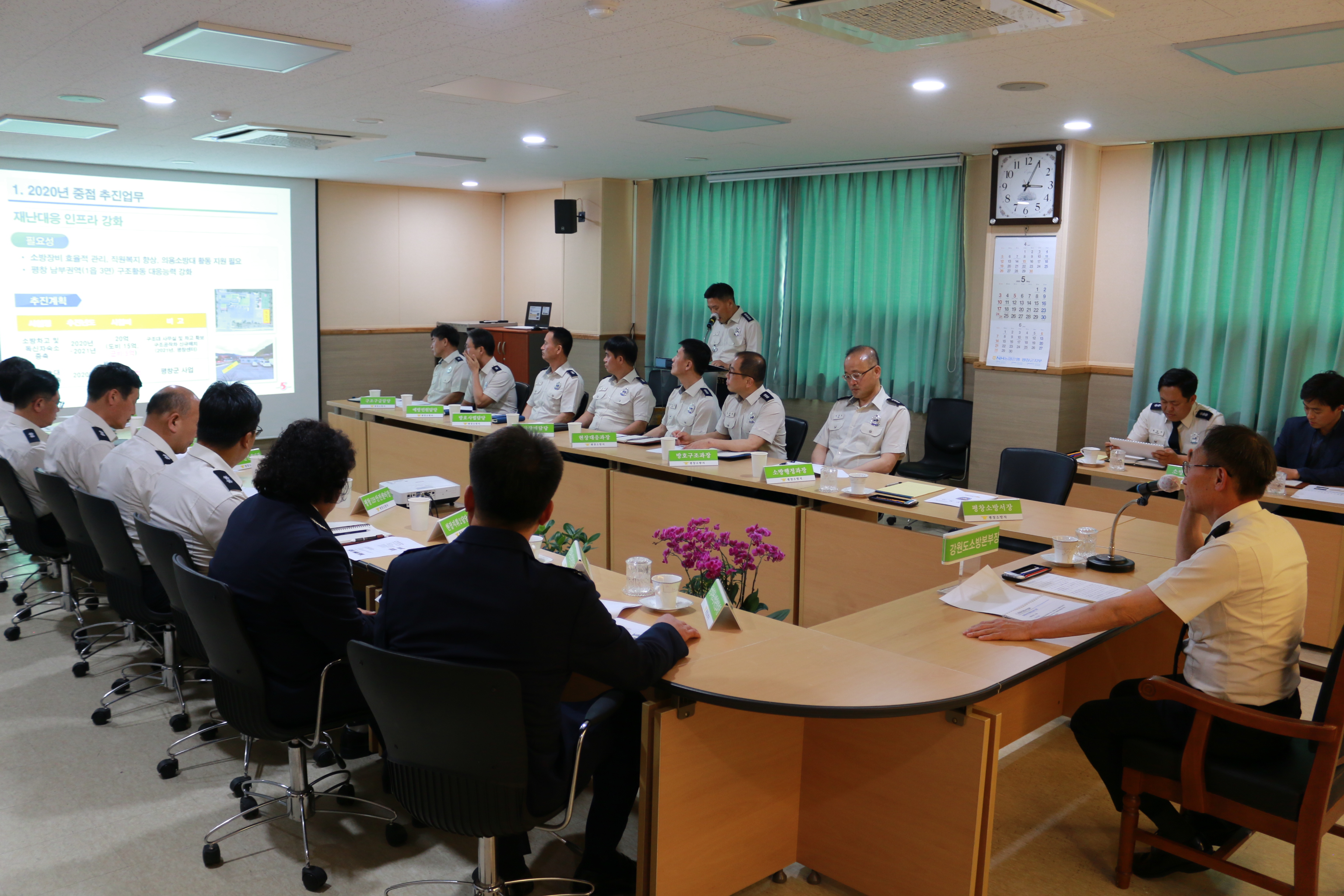 평창소방서는 25일 오후 3시에 김충식 강원소방본부장이 코로나19 대응상황을 확인하고 직원들의 노고를 격려하기 위해 방문했다고 밝혔다.