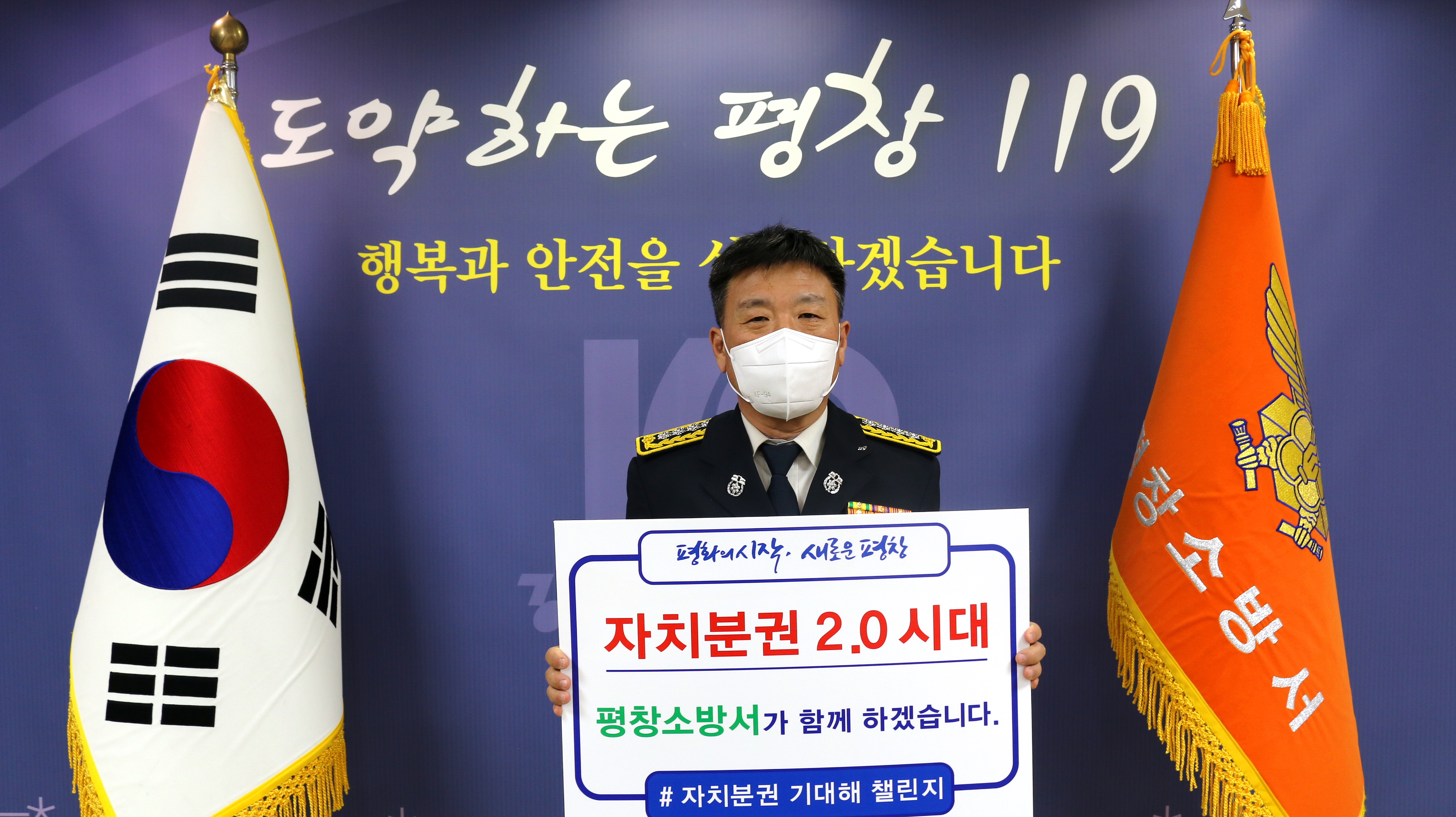 남종훈 서장은 ‘자치분권 2.0 시대, 평창소방서가 함께 하겠습니다’라는 메시지를 통해 자치분권 2.0 시대 개막을 응원했다.