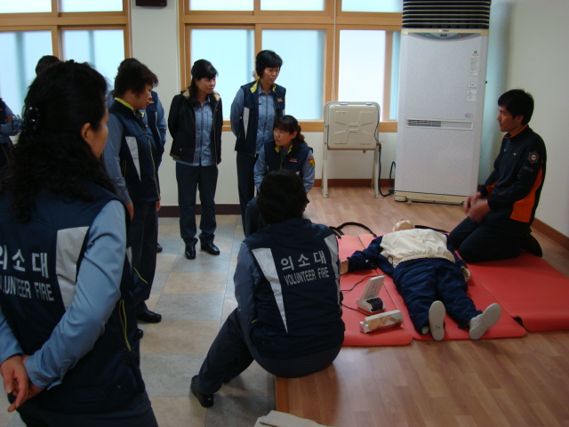 출석한 대원들은 모두 심폐소생술과 부목고정 훈련을 하였는데 심폐소생술은 몇차례