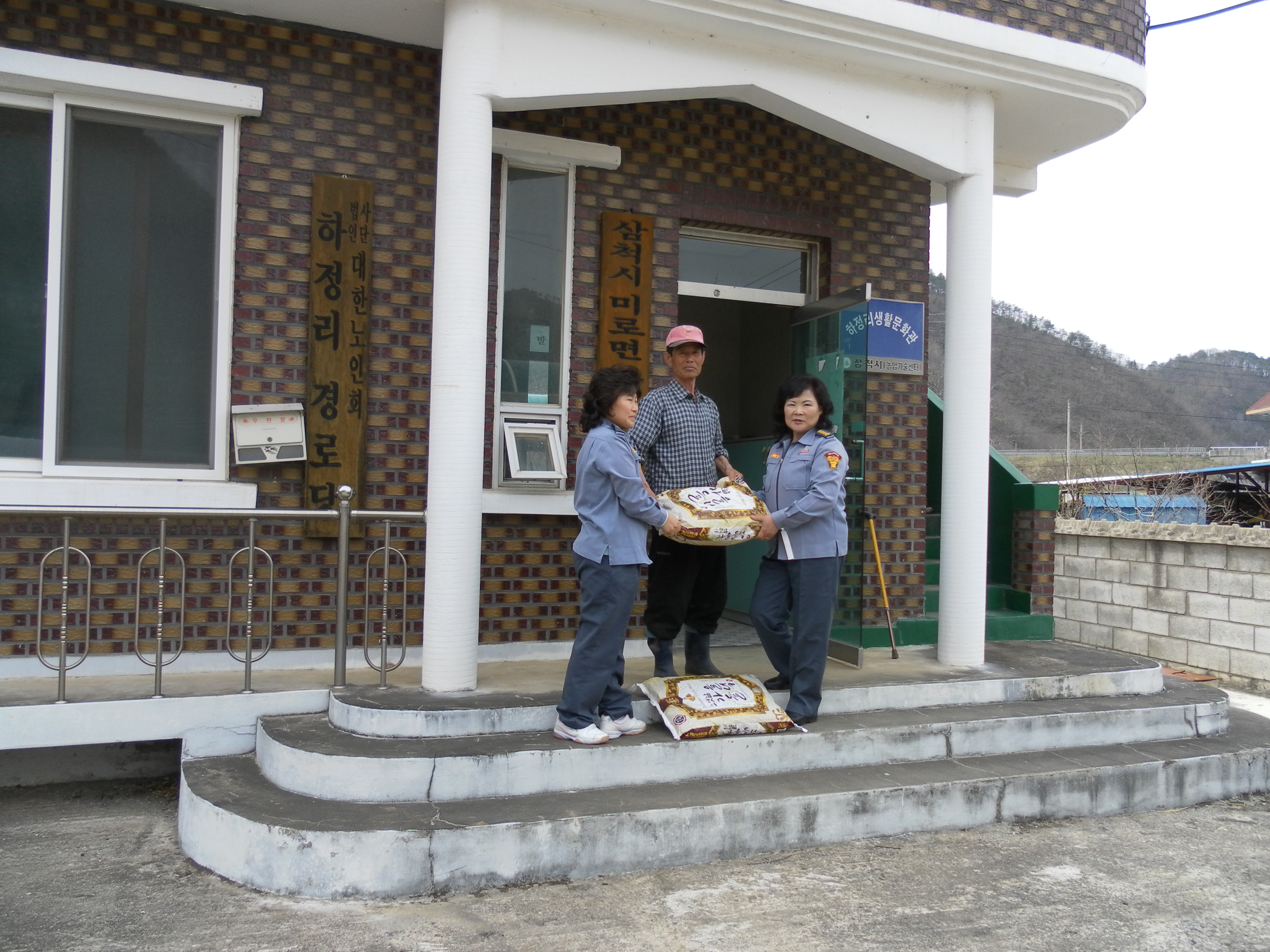 미로여성의용소방대는 4월13일 자매결연마을 하정리마을회관에 쌀40kg을 전달하였습니다.