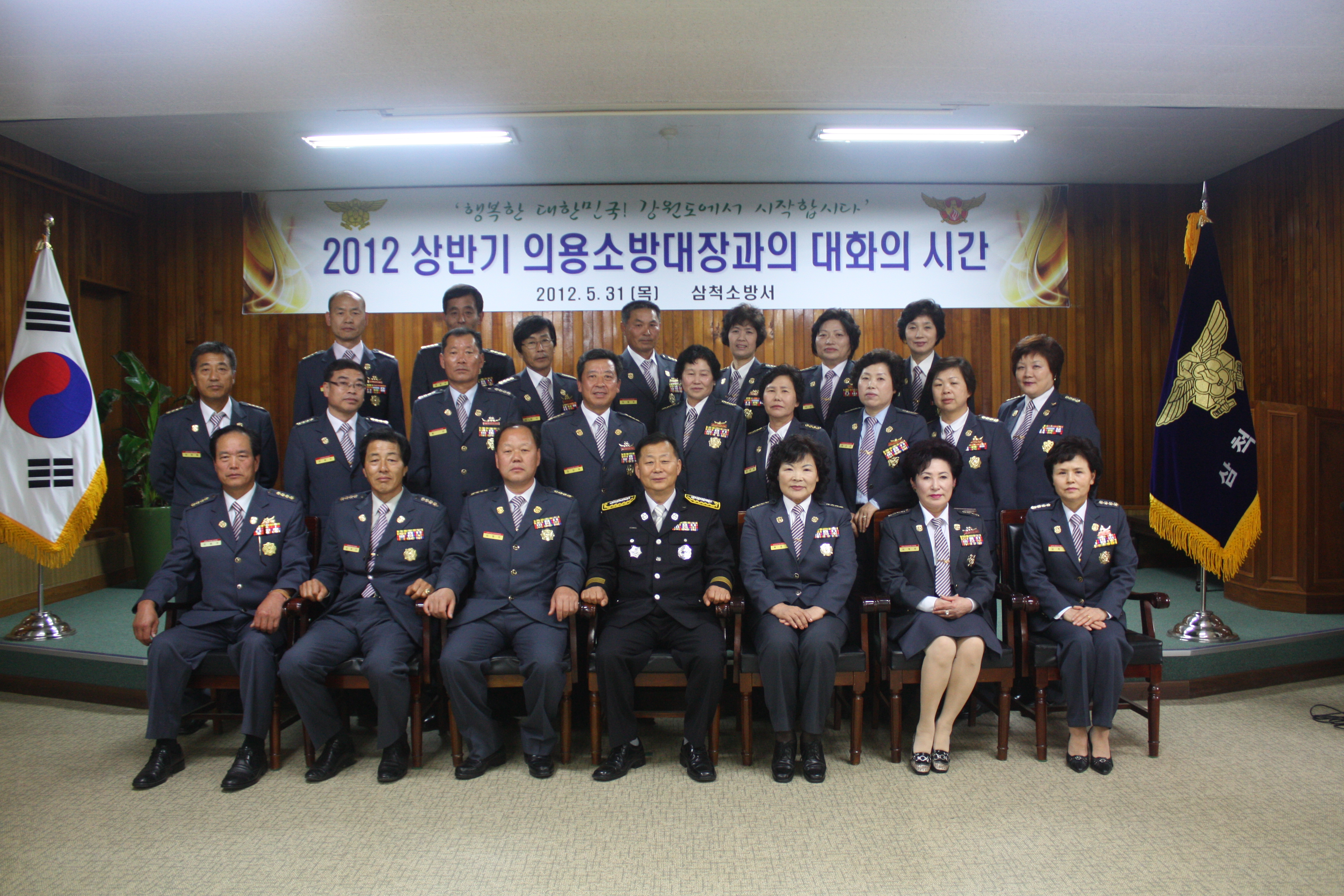 2012. 5. 31(목) 17:00부터 삼척소방서 회의실에서 삼척소방서장(서장 김상철) 주관하에 2012년 상반기 의용소방대장 간담회를 실시하였습니다. 주요내용으로는 봄철 산불예방활동, 새천년도로 실종자 수색활동, 4.11총선 등 특별경계근무 등 노고치하와 제25회 강원도 소방기술경연대회 등 당면현안사항에 대하여 회의가 진행되었습니다.