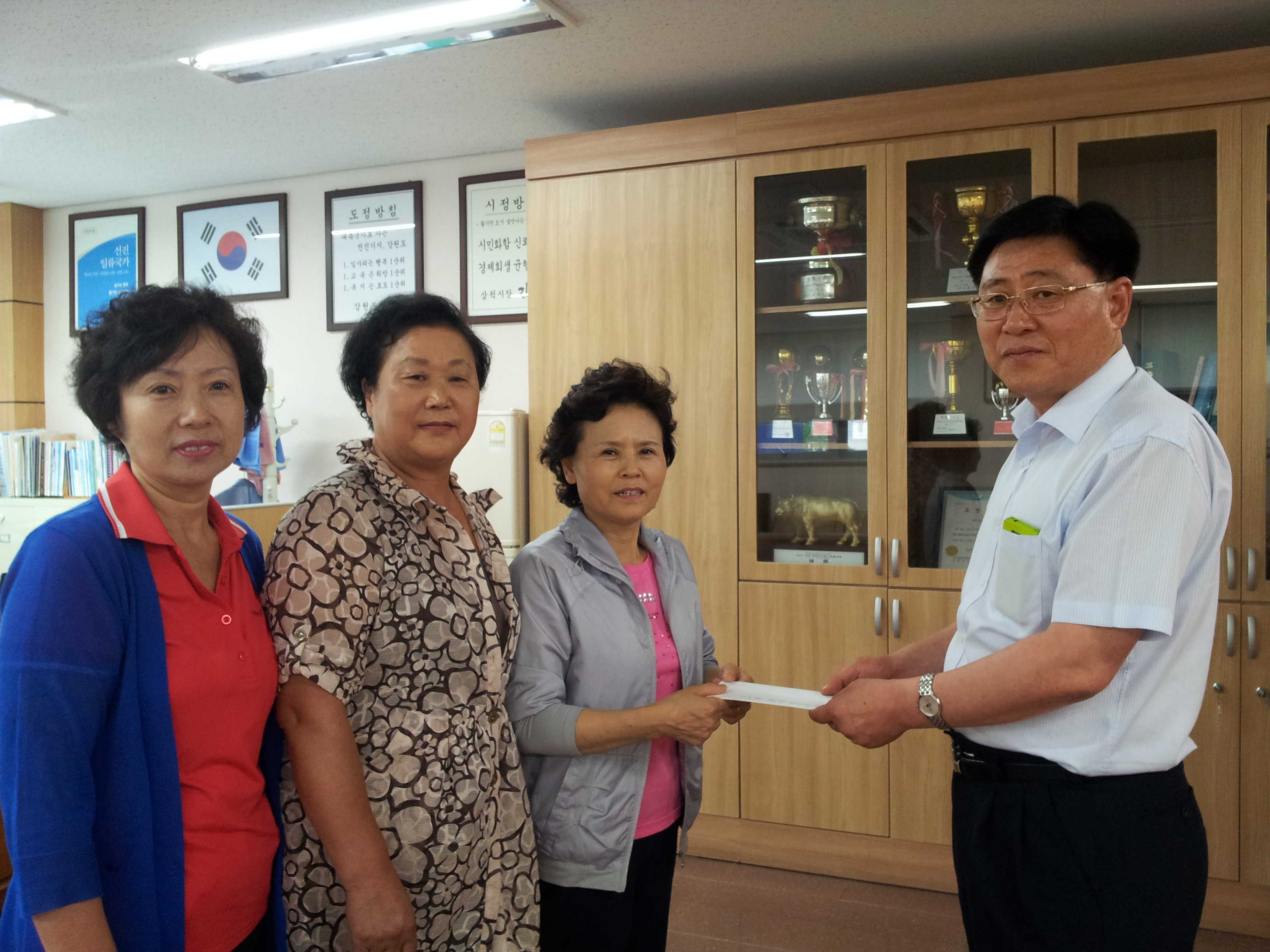삼척소방서 도계 여성의용소방대(대장:김옥랑)에서는 2012년 8월13일 도계읍사무소를 방문해 지난 7월에 발생한 고사리 은총교회 가스폭발사고로 고통을 겪고있는 피해자들을 위해 써달라며 30만원의 성금을 기탁하였습니다.