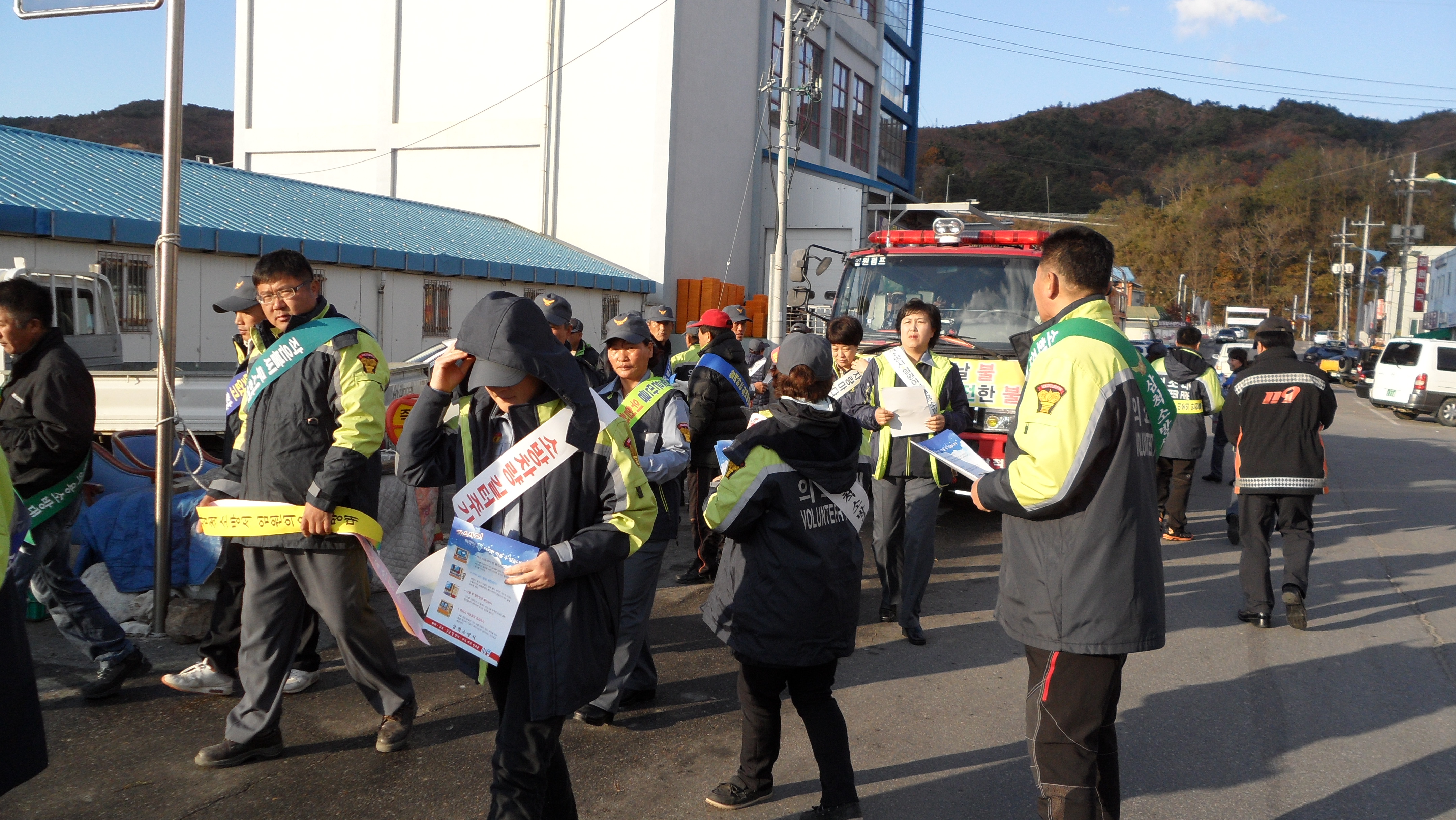 화재예방 및 소방차 길터주기를 가두행진을 하면서 홍보하였습니다.