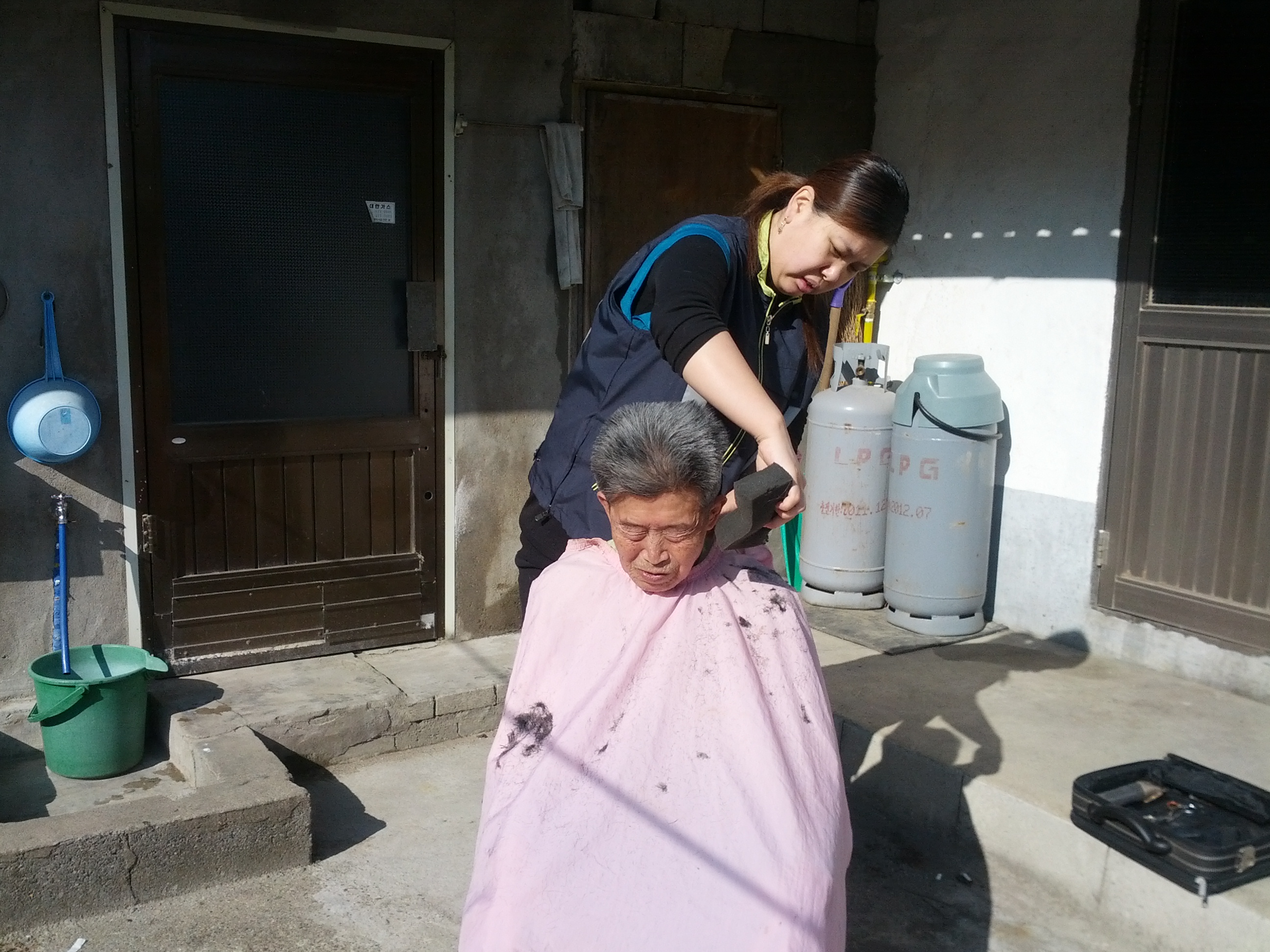 거동이불편한미로지역(4명)어르신이미용봉사 목욕봉사까지대원15명참석
