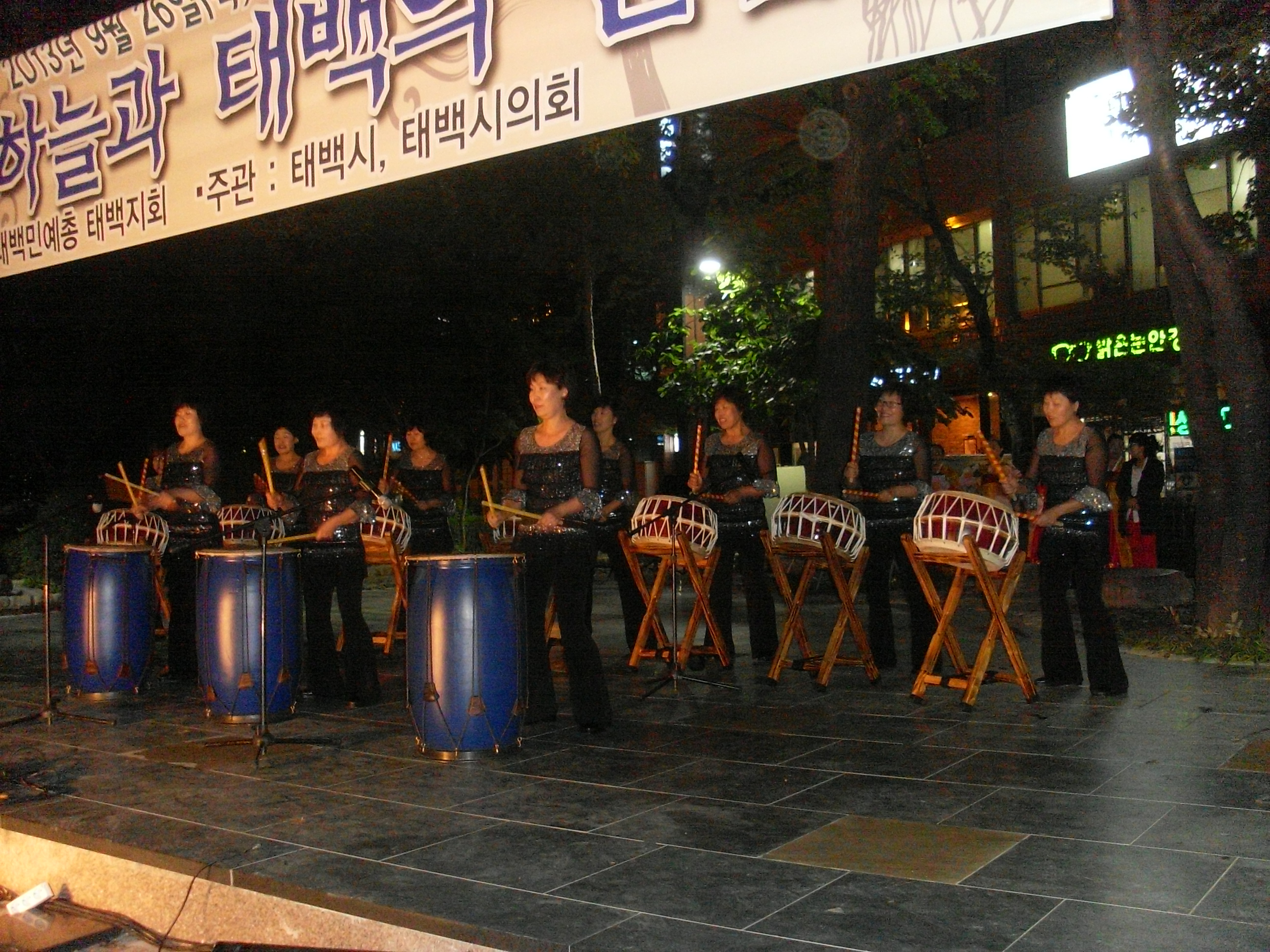 태백시까지 진출하여 난타공연을 하고 밤 늦게 도착, 회원들 수고하셨습니다.