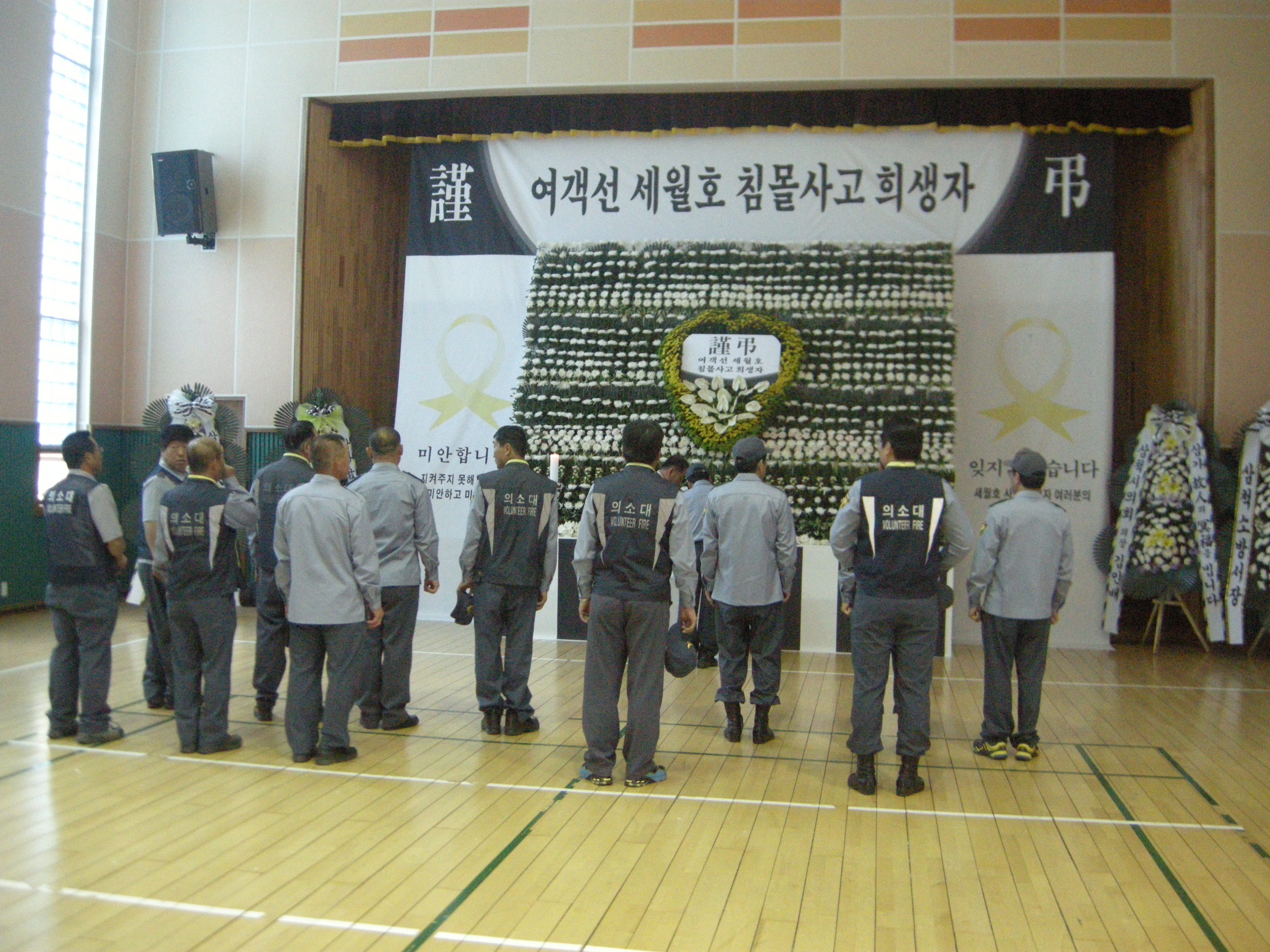 도계의용소방대(대장 김광우)는 세월호 희생자 가족들과 아픔을 함께, 삼척시 청소년수련관에 마련된 분향소 분향