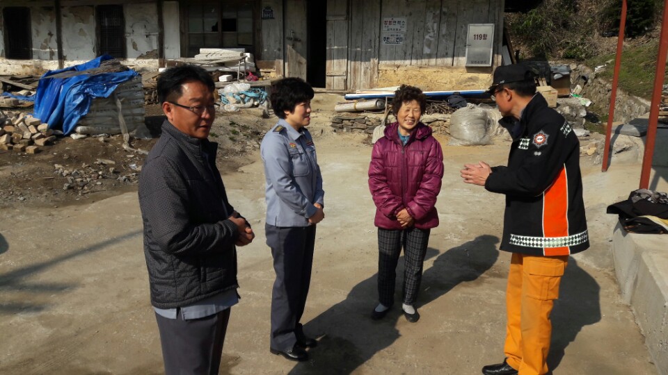 노곡면 개산리에 화재로 가옥이 전소된 이웃을 방문 위문품 전달과 소화기 사용법을 가르쳐드리고 왔습니다^^