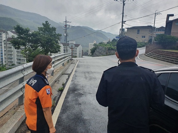 이번 현지 확인에서는 과거 관내 풍수해 발생지역인 초곡지구 외 7개소를 선정하여 위험지역 확인, 장비 관리상태 및 현장활동 안전 관리 등을 사전 점검했다.