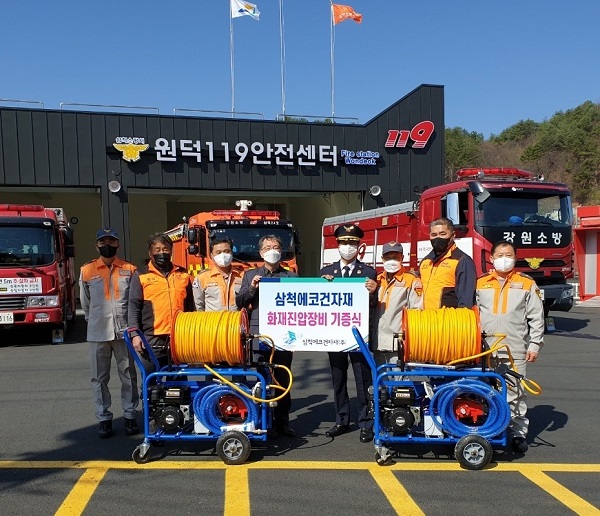 | 747 | (주)에코건자재, 삼척소방서원덕남성의용소방대에 산림화재진화용 고압펌프 기증 | 삼척홍보 | 2022-04-11 | 1148 | |