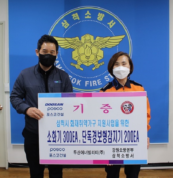 | 751 | 삼척 화력발전 건설사 두산에너빌리티‧포스코건설, 주택용 기초소방시설 기증 | 삼척홍보 | 2022-04-14 | 1218 | |