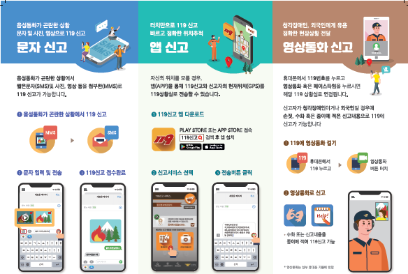 문자, 앱, 영상통화 등으로도 119에 신고할 수 있습니다.